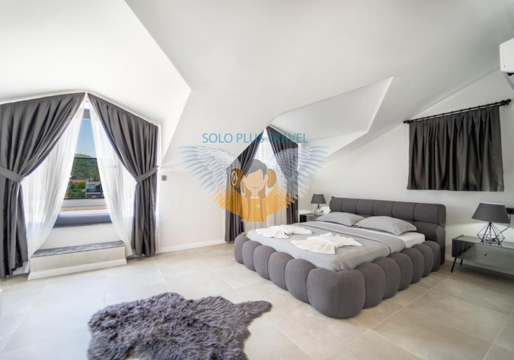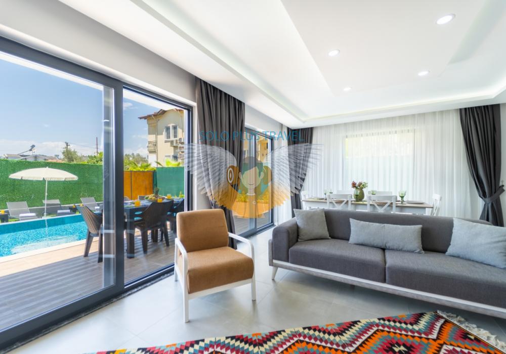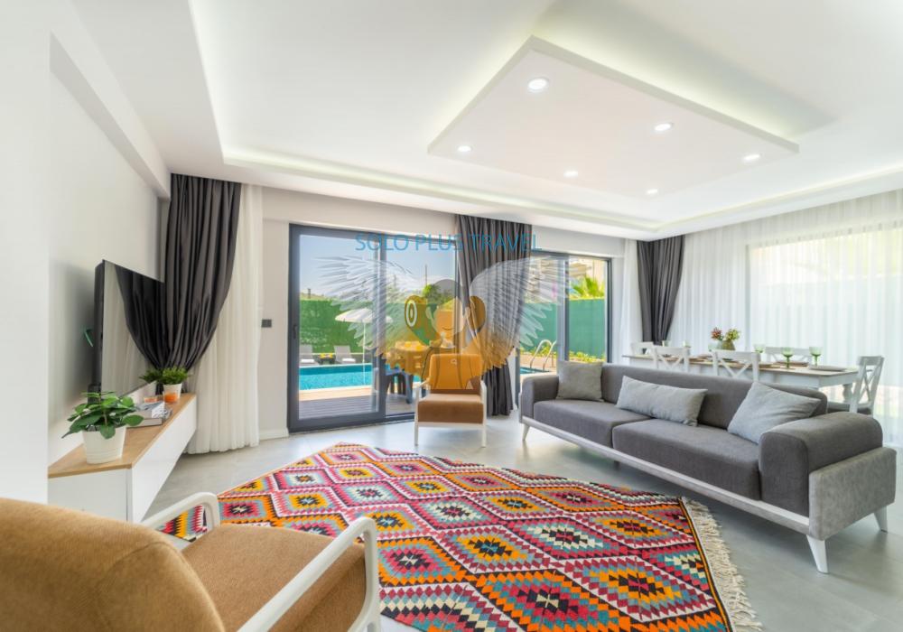 Villa Solo Polly 2 ist eine luxuriöse 3+1 Villa mit privatem Pool (250 m²) im Stadtteil Hisarönü in Fethiye. Sie bietet Platz für 6 Personen und einen komfortablen, modernen Urlaub.
