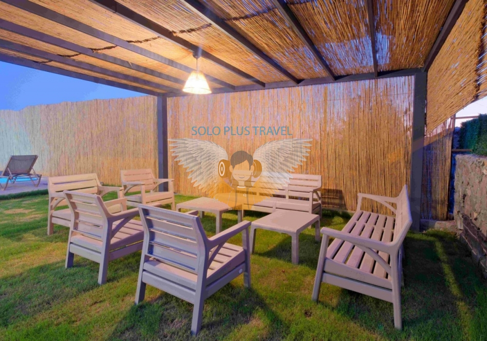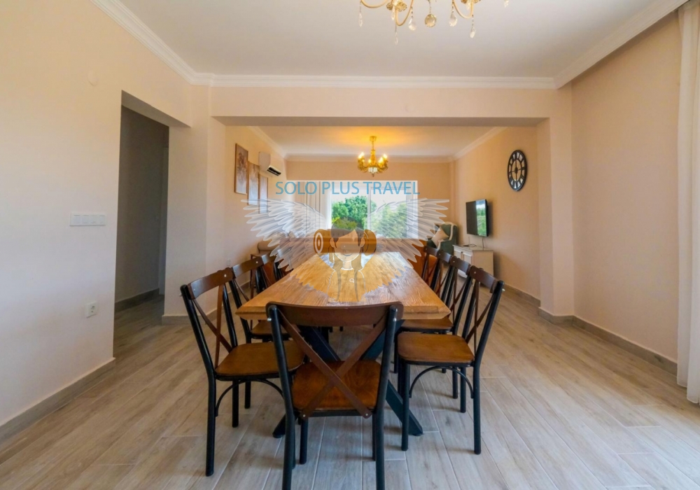 With a total of 5 bedrooms, 1 living room, and a fully equipped kitchen, our villa has a capacity of 12 people, making it ideal for large families and groups of friends. Its spacious and bright rooms, comfortable seating area, and functional kitchen provide an environment where you will feel right at home throughout your holiday.