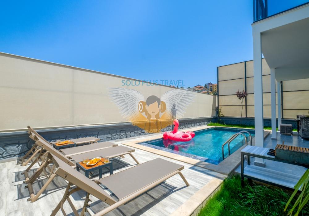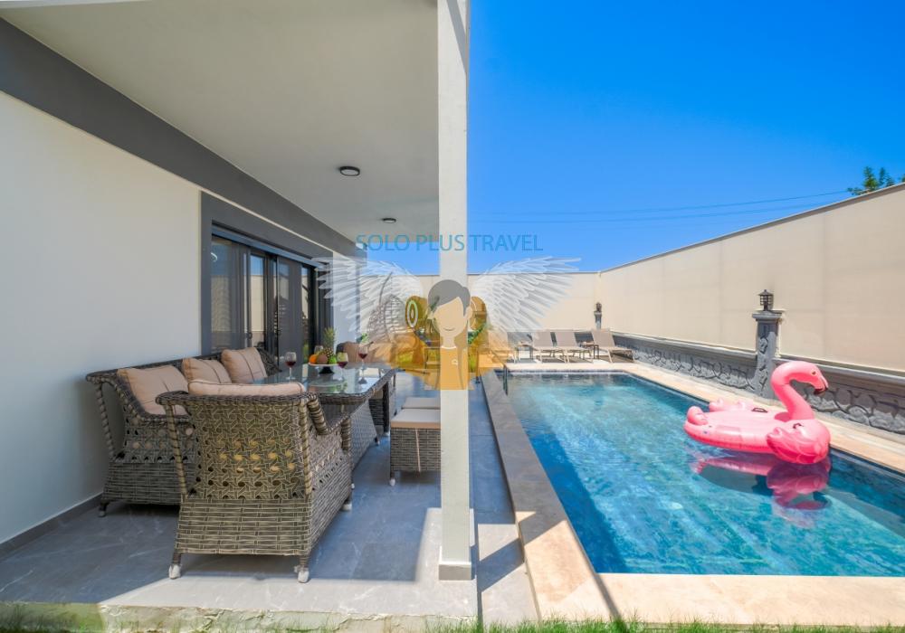 With a private pool, spacious garden, and modern interior design, Villa Solo Ela is the perfect choice for those who want to enjoy both relaxation and entertainment in Fethiye. Book now and experience a luxurious, exclusive holiday!