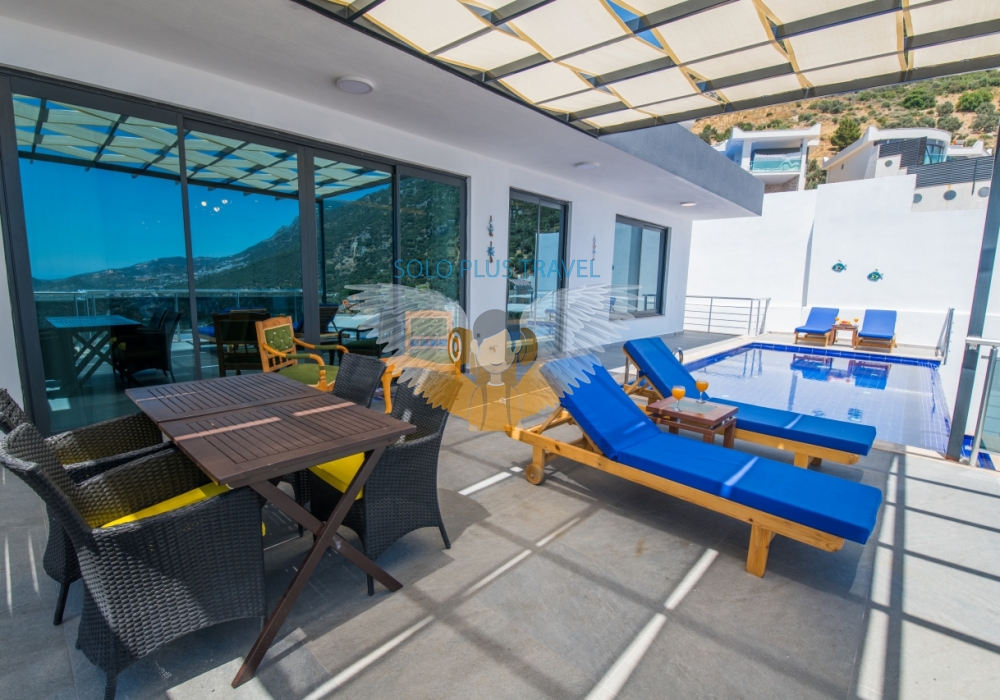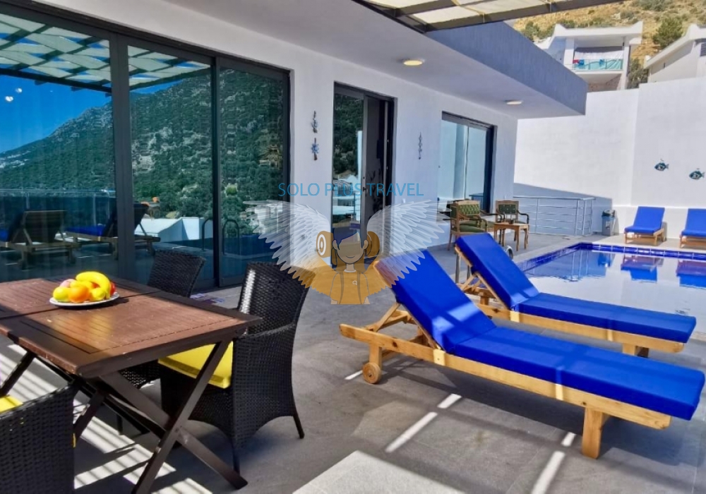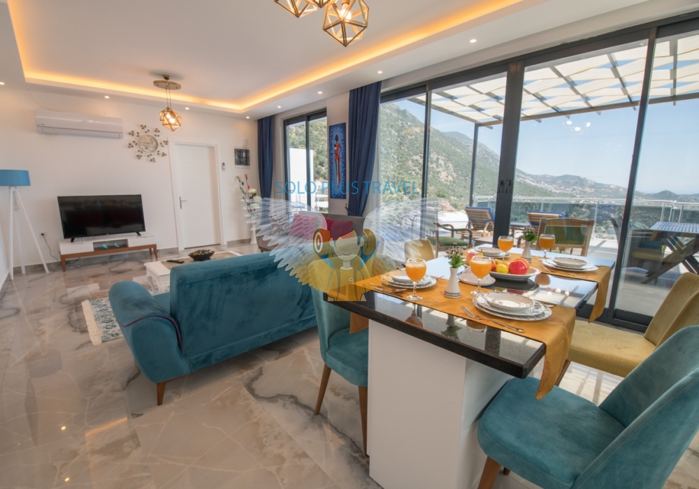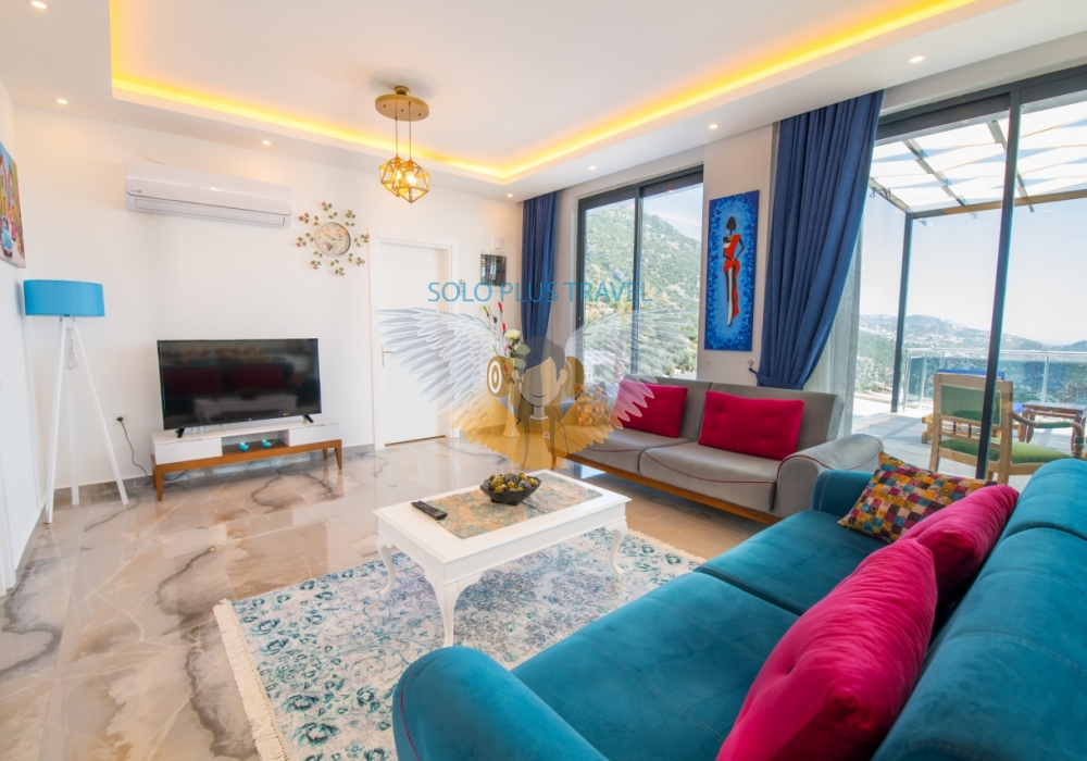 Nuestra lujosa villa de vacaciones en alquiler, con vistas al mar, la naturaleza y la ciudad de Kalkan, la perla del Mediterráneo, tiene 2 dormitorios y una capacidad de alojamiento de 4 personas. Nuestra villa de vacaciones, ubicada en la zona con la vista más hermosa de nuestro pueblo, que se ha convertido en el símbolo del silencio, es una villa ideal para nuestras parejas de luna de miel y familias pequeñas.