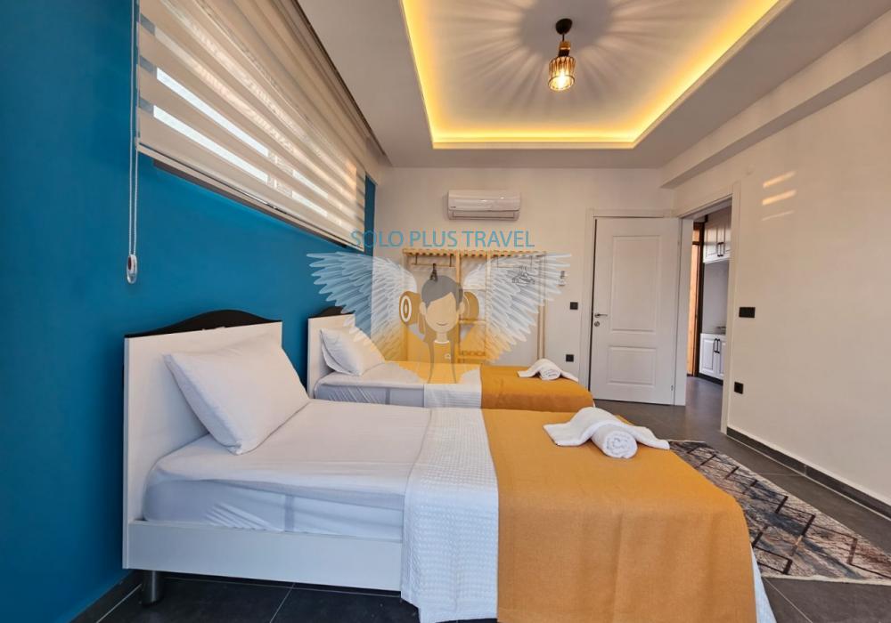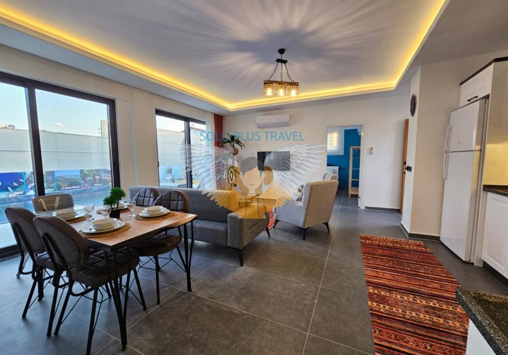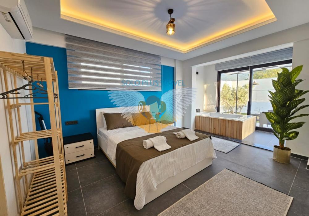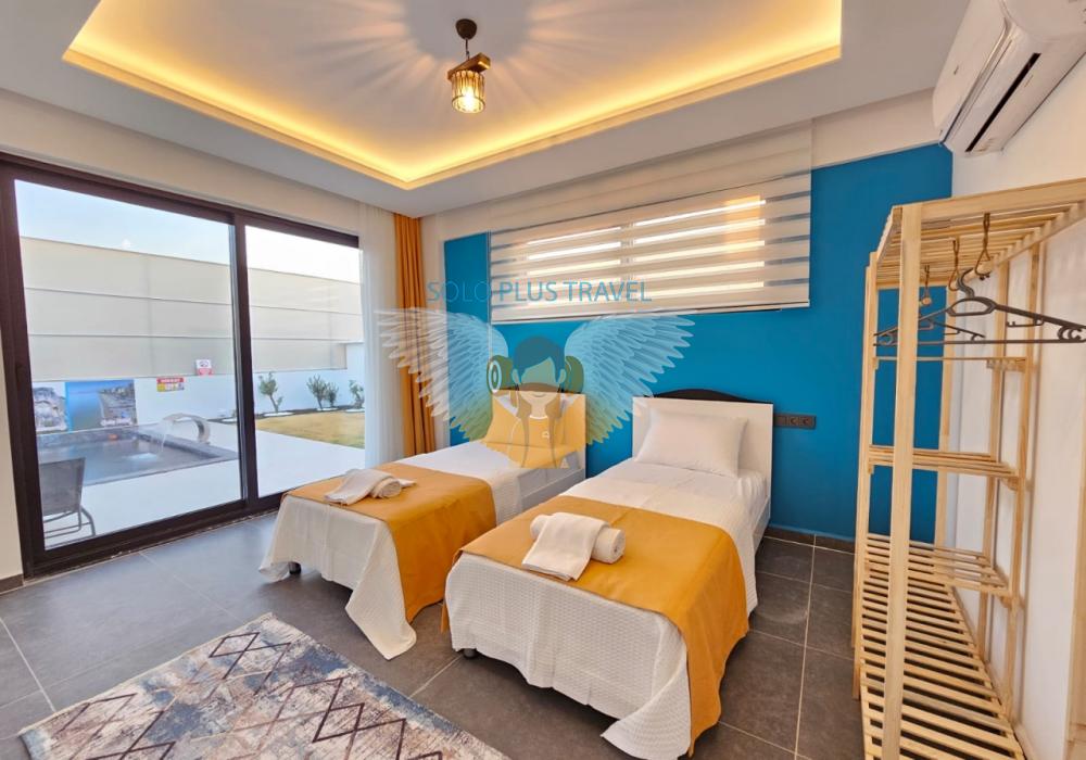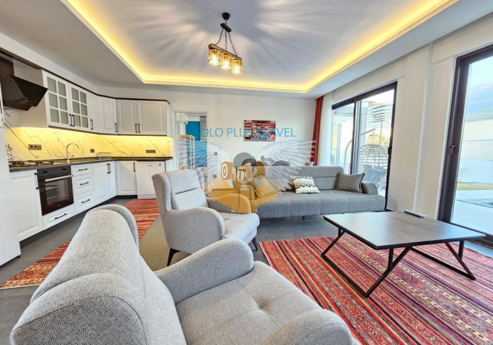 Ubicada en la tranquila y natural zona de Karaçulha, Villa Solo Esinti combina confort y lujo para ofrecer una experiencia vacacional inolvidable. Con capacidad para 4 personas, esta villa de arquitectura moderna y detalles elegantes es perfecta para familias y parejas de luna de miel.
