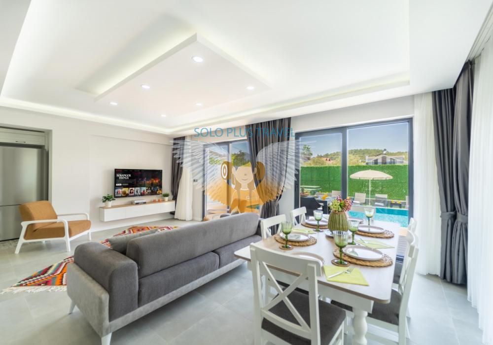 Villa Solo Polly 1 es una villa de lujo 3+1 ubicada en la zona de Hisarönü en Fethiye, con capacidad para 6 adultos y 1 bebé. Se encuentra a aproximadamente 10 minutos en coche de Ölüdeniz y destaca por su ubicación céntrica.