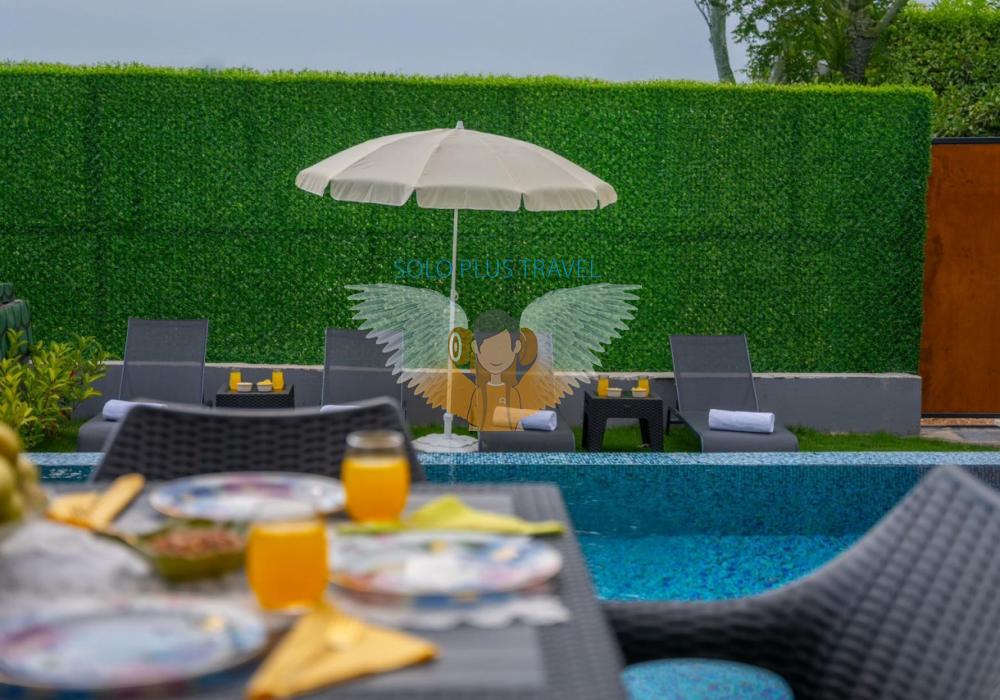 La villa cuenta con 3 dormitorios. El dormitorio principal dispone de cama doble, baño privado, aire acondicionado y jacuzzi. El segundo dormitorio tiene cama doble, aire acondicionado y baño privado, mientras que el tercero cuenta con dos camas individuales, aire acondicionado y baño privado.