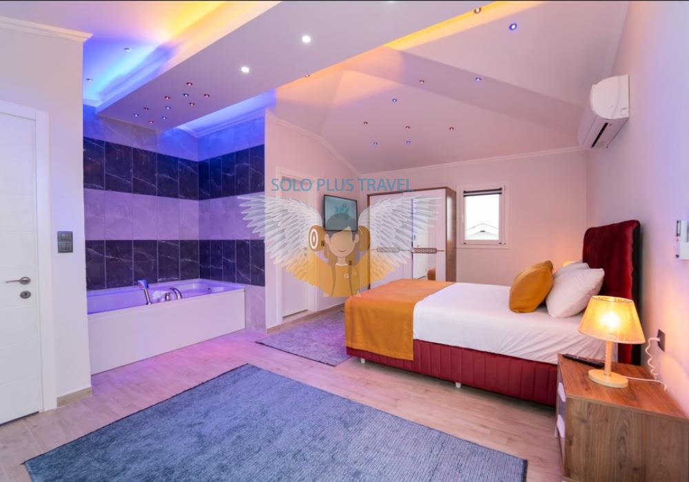 Villa Solo Star es una villa con piscina privada, ubicada en la zona de Karaçulha en Fethiye, en plena naturaleza y ofreciendo una estancia confortable. Gracias a su distribución espaciosa, es ideal para familias numerosas y proporciona una estancia cómoda y agradable.