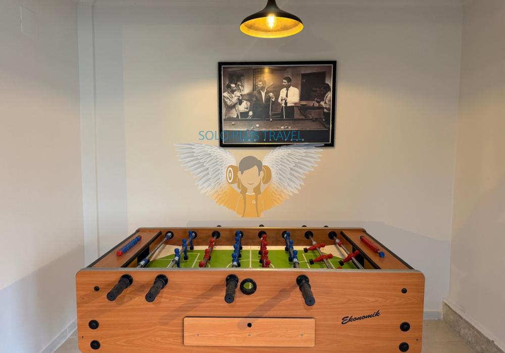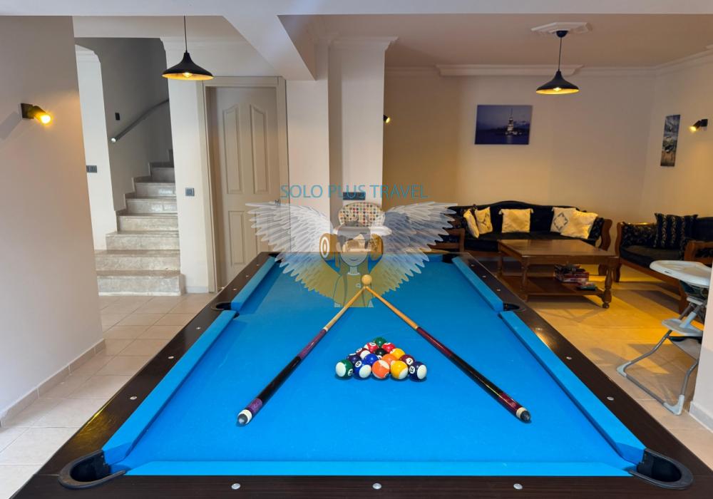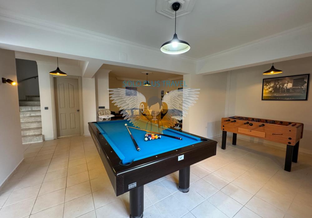 Con 5 dormitorios y 3 baños, la villa tiene capacidad para hasta 12 huéspedes. Su distribución amplia y funcional garantiza una estancia cómoda para todos. El gran jardín, la piscina privada y las áreas sociales hacen que sus vacaciones sean inolvidables. Además, cuenta con una sala de juegos con billar y ping-pong.