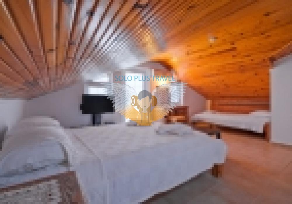 • Chambre : lit double, climatisation, armoire, table de chevet, salle de bain privée