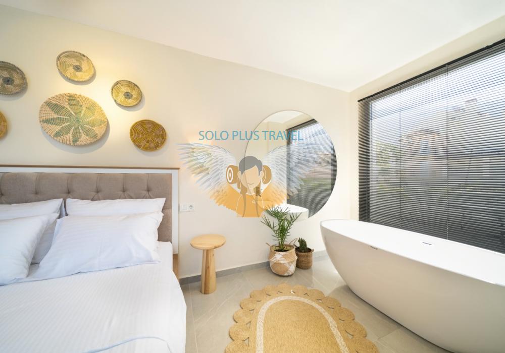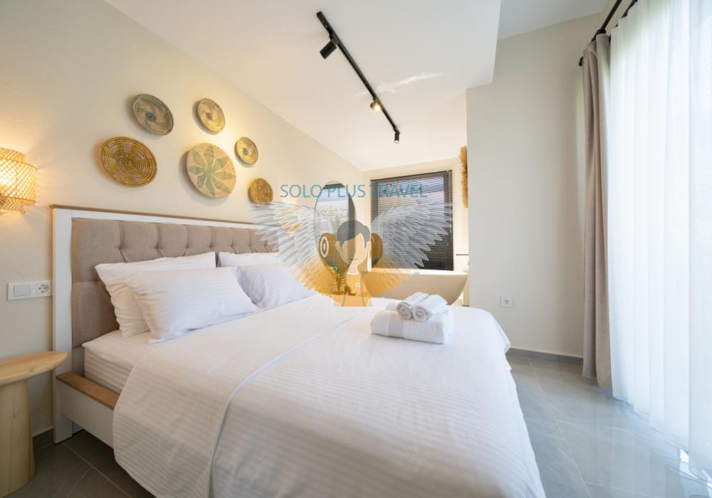 Вилла с приватным защищённым бассейном идеально подходит для семей и молодожёнов, ценящих уединение. Вмещает до 4 человек, включает 2 спальни, полностью оборудованную кухню, просторную гостиную и солнечную террасу у бассейна.