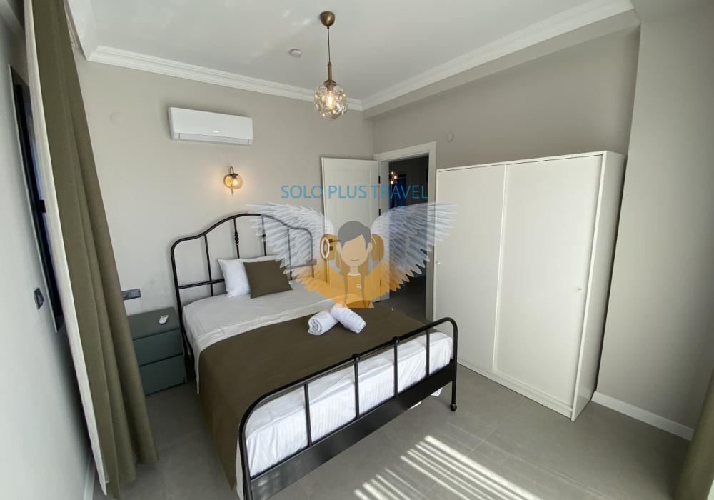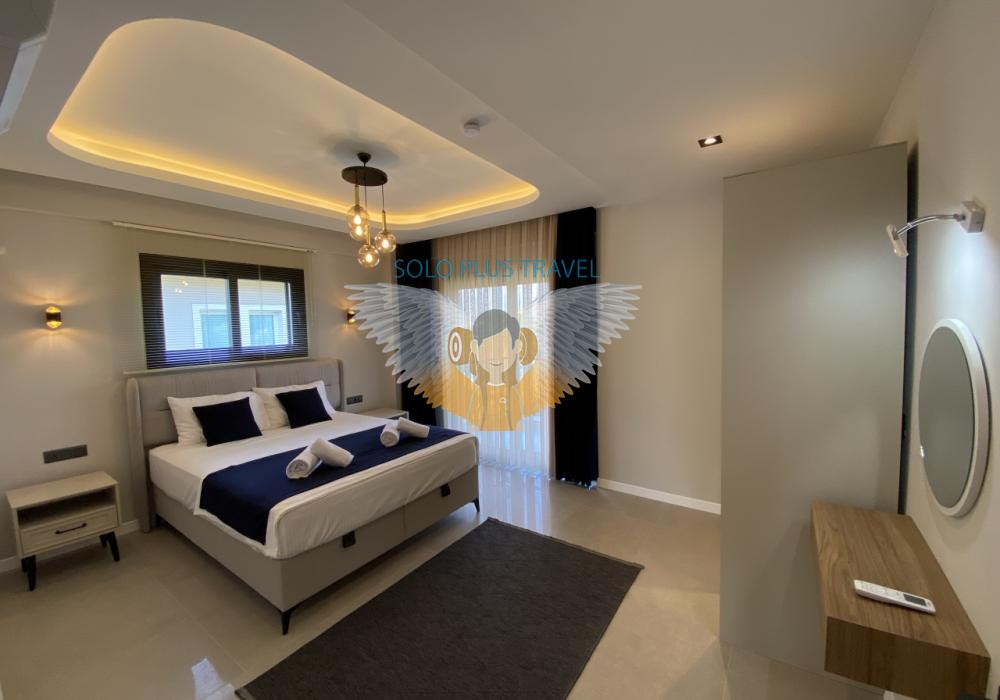 Villa Solo Eyşan — это роскошная вилла, расположенная недалеко от центра Фетхие. Она выделяется современным дизайном и просторными жилыми зонами. С 4 спальнями и вместимостью до 8 человек, она идеально подходит для больших семей и компаний друзей.