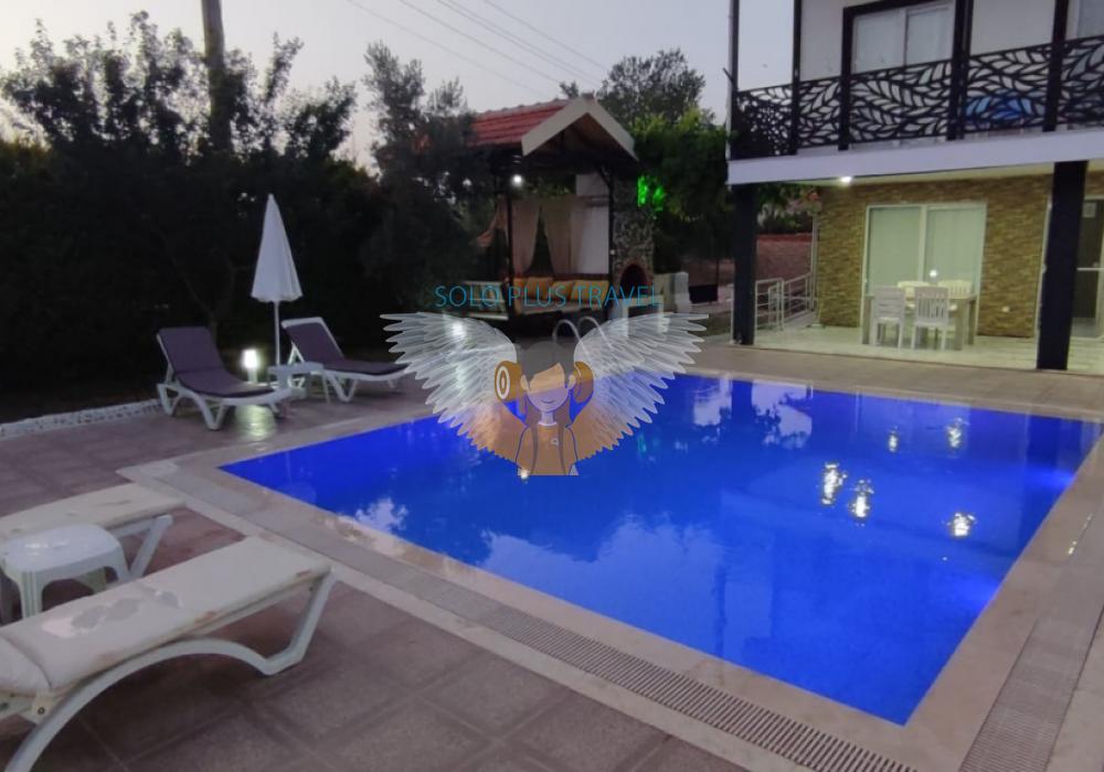 Villa Solo Nevcan — это роскошная вилла с частным бассейном, расположенная всего в 3 км от всемирно известного курорта Олюдениз. Вилла рассчитана на 8+2 человек и имеет 4 спальни и 4 ванные комнаты, что делает её идеальным вариантом для больших семей и компаний друзей. Просторный сад, стильный дизайн и частный бассейн обеспечивают комфортный и приятный отдых.