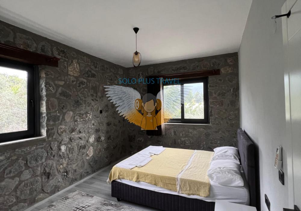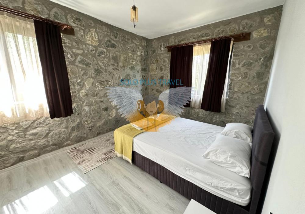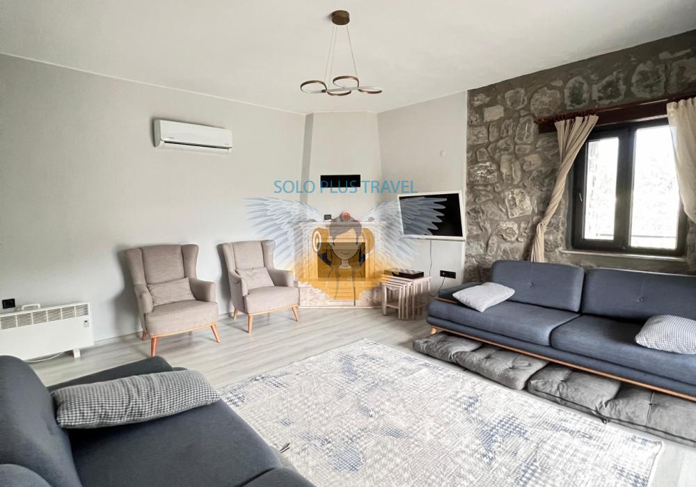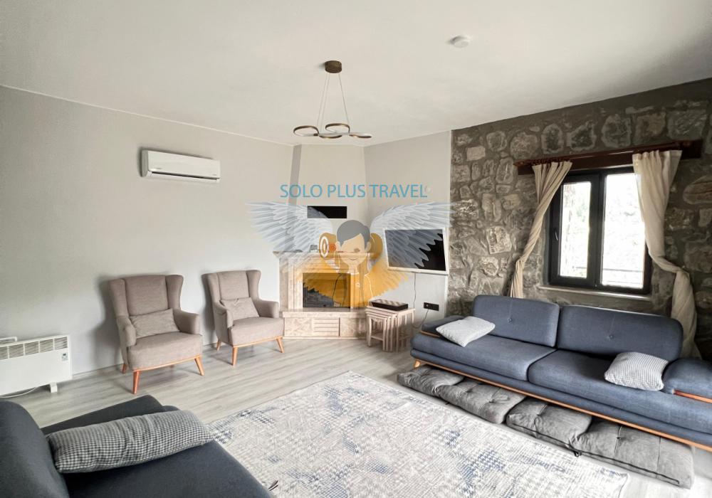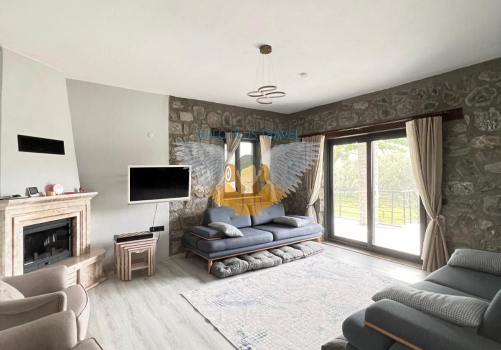 Nestled in the peaceful and nature-rich Esenköy neighborhood of Fethiye, Muğla, Villa Kayra offers an ideal stay for guests seeking both comfort and character. This charming stone villa, available at 6,000 TL per night, is a spacious and well-equipped retreat perfect for large families or groups of friends.