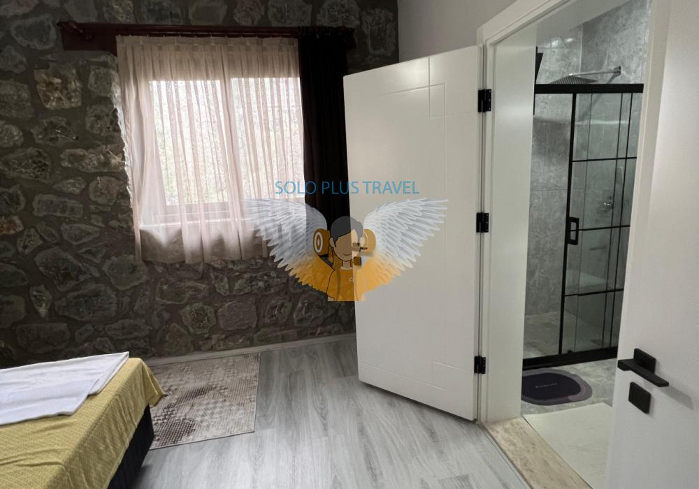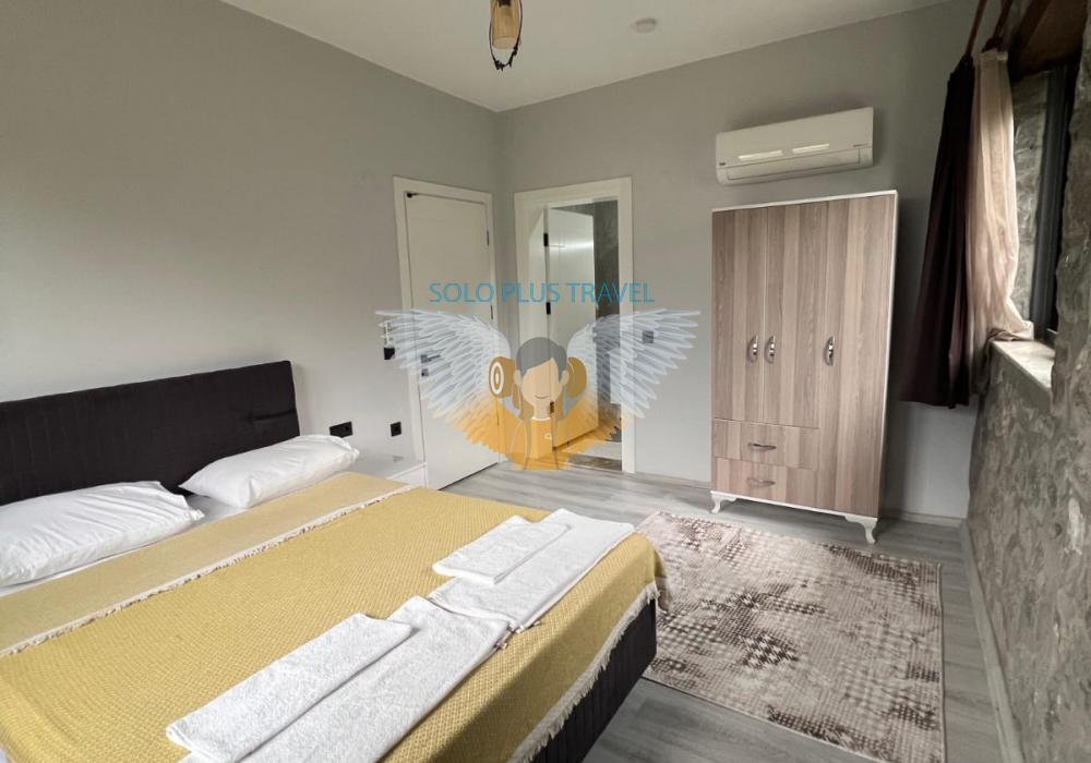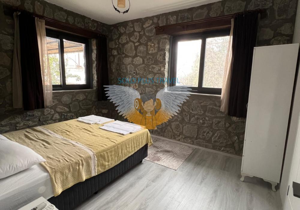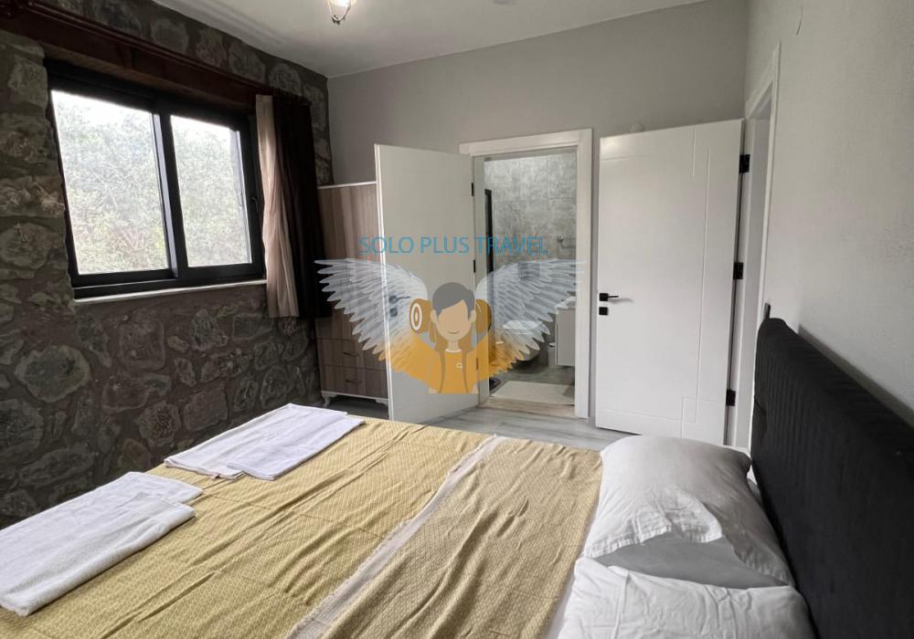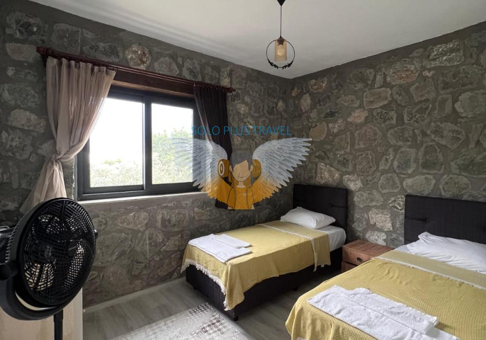 Nestled in the peaceful and nature-rich Esenköy neighborhood of Fethiye, Muğla, Villa Kayra offers an ideal stay for guests seeking both comfort and character. This charming stone villa, available at 6,000 TL per night, is a spacious and well-equipped retreat perfect for large families or groups of friends.