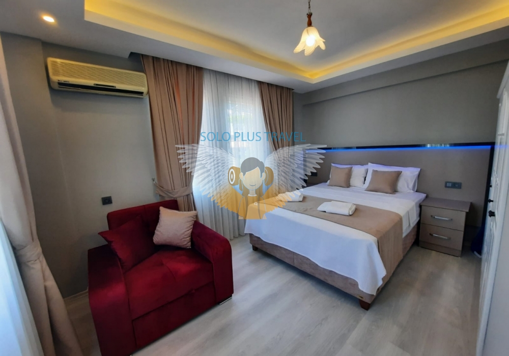 Denize yalnızca 50 adım mesafede, Fethiye'nin gözde tatil bölgesi Çalış Plajı’nda bulunan 1+1 apart dairemiz; günlük, haftalık ve aylık olarak kiraya verilmektedir. Konumu, konforu ve çevresel olanaklarıyla huzurlu bir tatil deneyimi sunmaktadır.