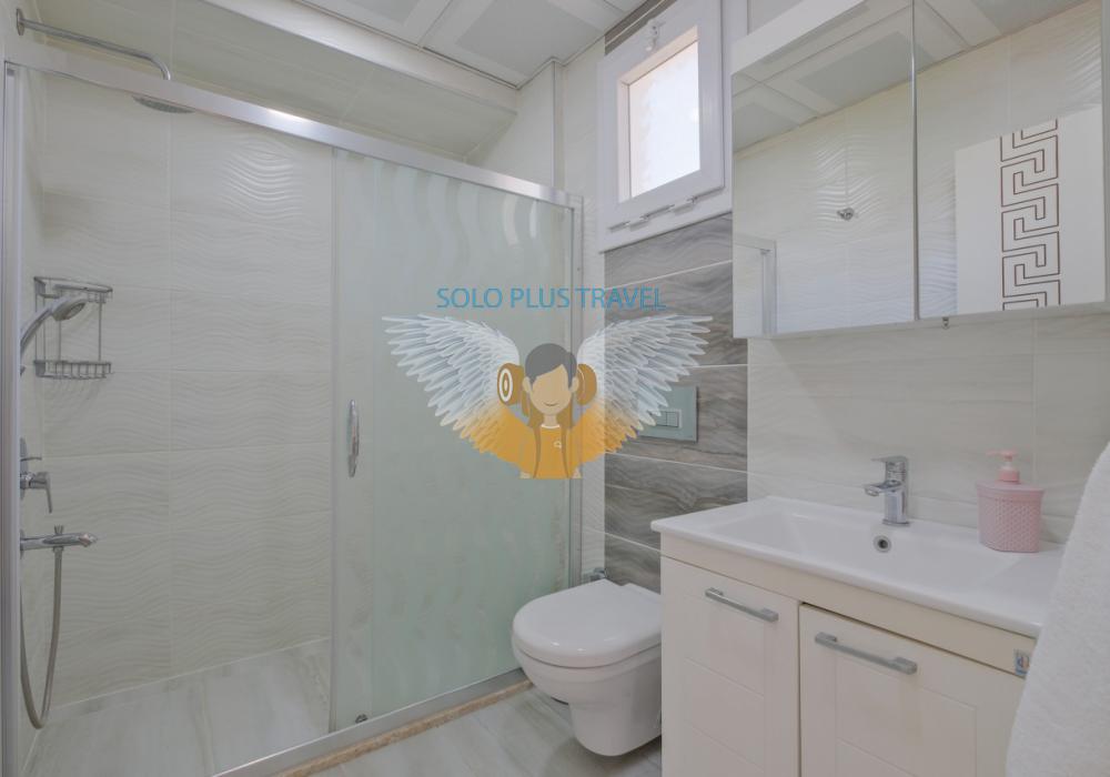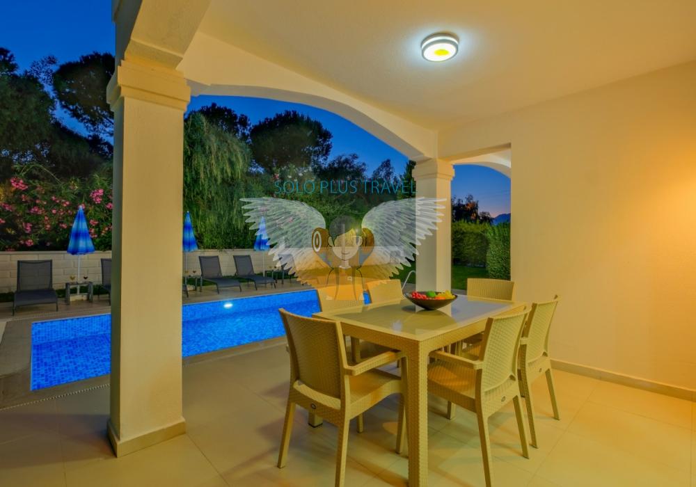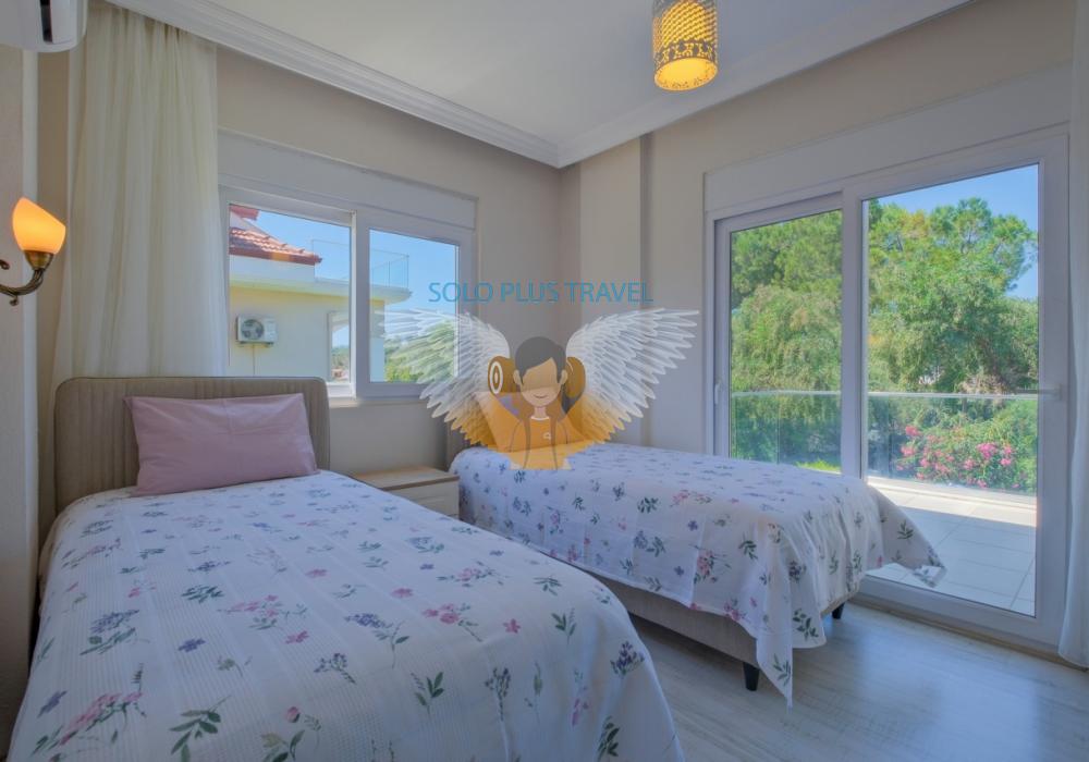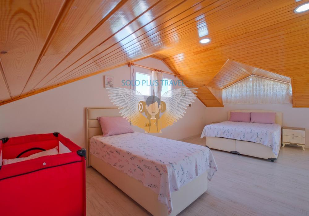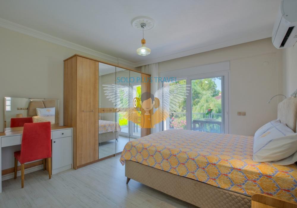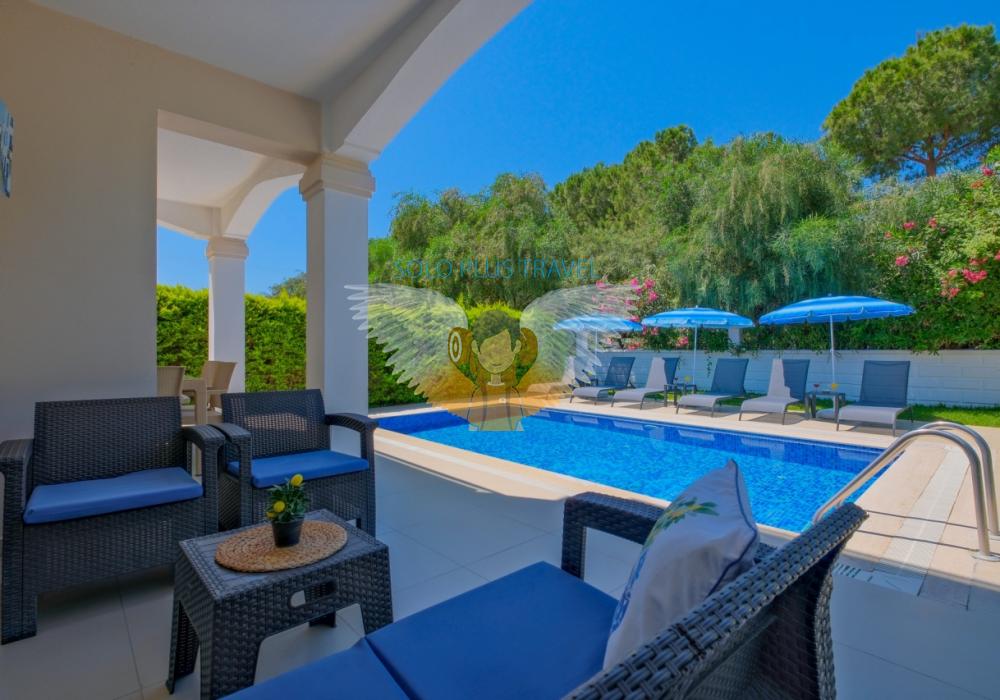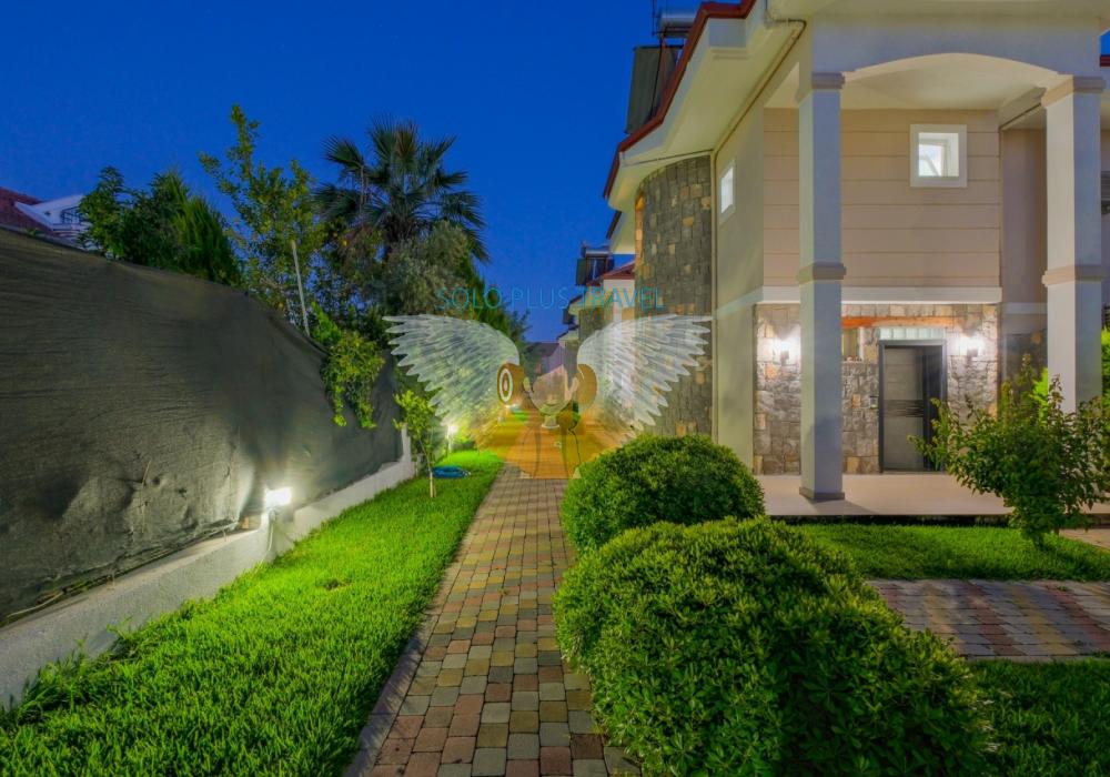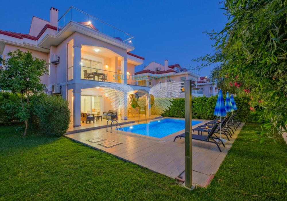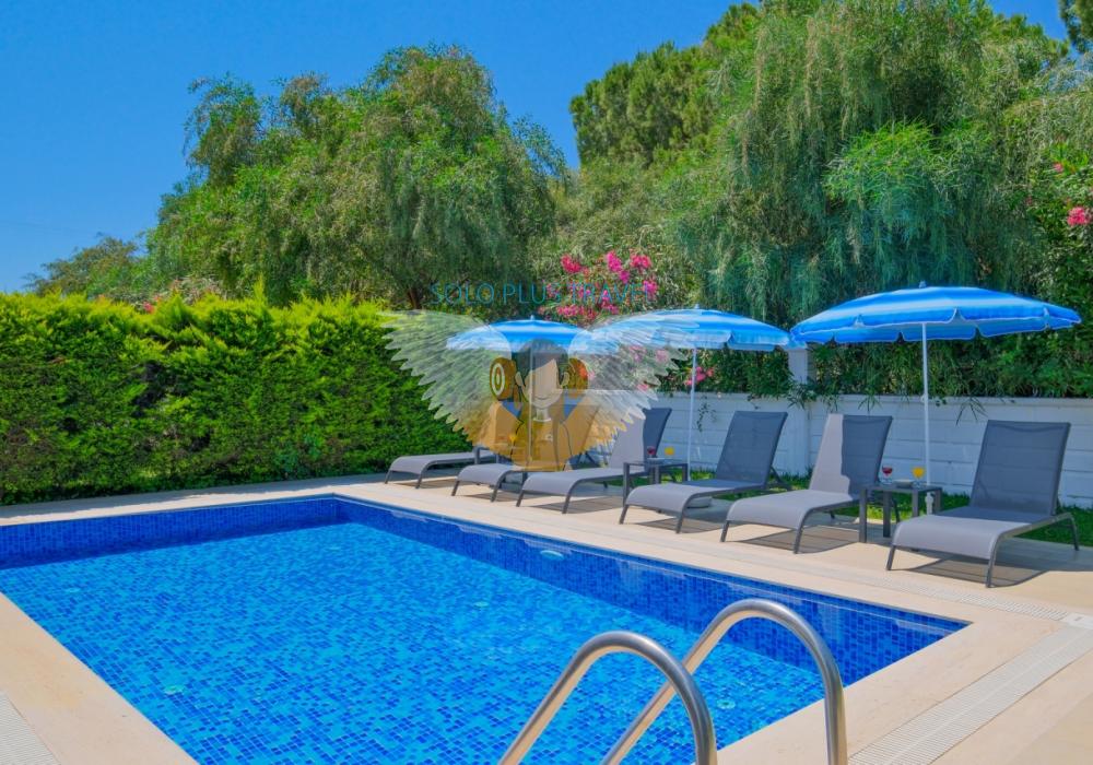 Fethiye’nin Çalış bölgesinde yer alan Villa Abdullah, konfor ve lüksü bir arada sunan özel havuzlu bir villadır.Villa, dört yatak odası ve dört banyosu ile 8 kişilik konaklama kapasitesi sağlar.Modern tasarıma sahip iç mekanında tam donanımlı bir mutfak, klima ve kablosuz internet mevcuttur.Geniş ve ferah salonu, aileniz veya arkadaş grubunuzla keyifli vakit geçirmenize imkân tanır.Bahçesinde özel havuz, şezlonglar ve veranda ile açık hava keyfi sunulmaktadır.Çalış Plajı’na sadece 1.5 km mesafede olması, deniz ve güneş keyfini kolaylaştırır.Villada ayrıca TV, uydu alıcı ve rahat oturma alanları gibi modern olanaklar yer alır.Aileler, balayı çiftleri veya arkadaş grupları için ideal bir tatil seçeneğidir.