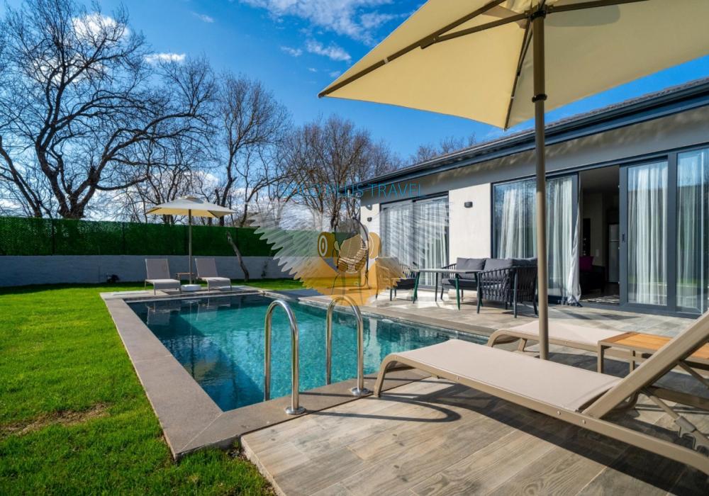 Villanın iç ve dış mekanı oldukça modern tasarlanmış olup havuz alanı korunaklıdır. Mahremiyetine önem veren misafirlerimiz için oldukça doğru bir tercihtir. Ebeveyn yatak odasında bulunan jakuzi ile doğa manzarası eşliğinde tüm yıl beklediğiniz keyfi yaşayabilirsiniz.