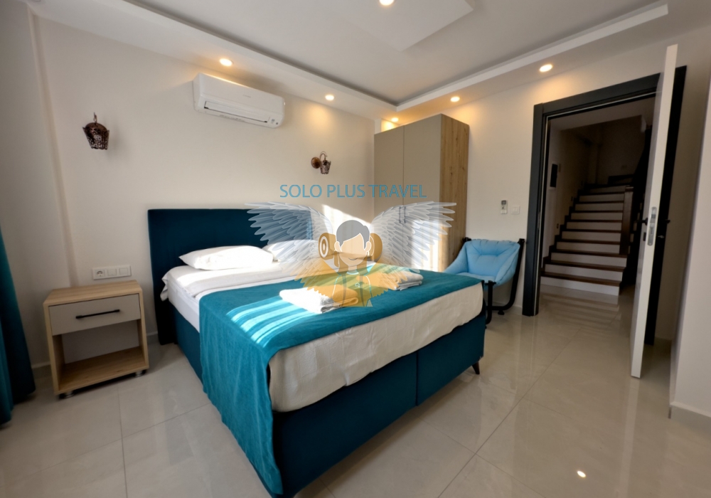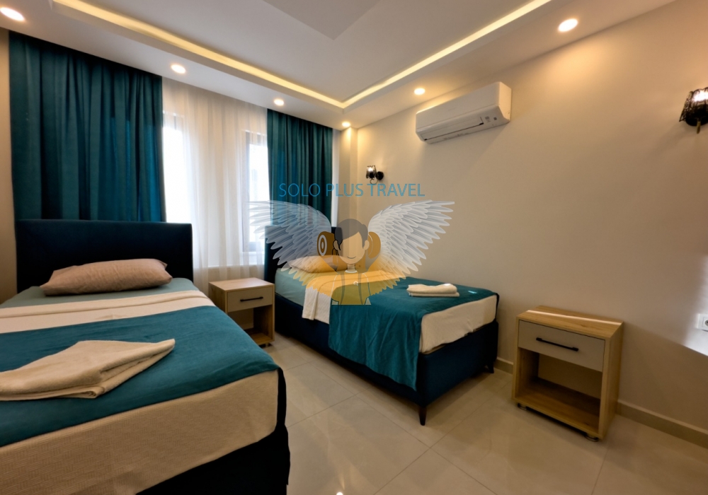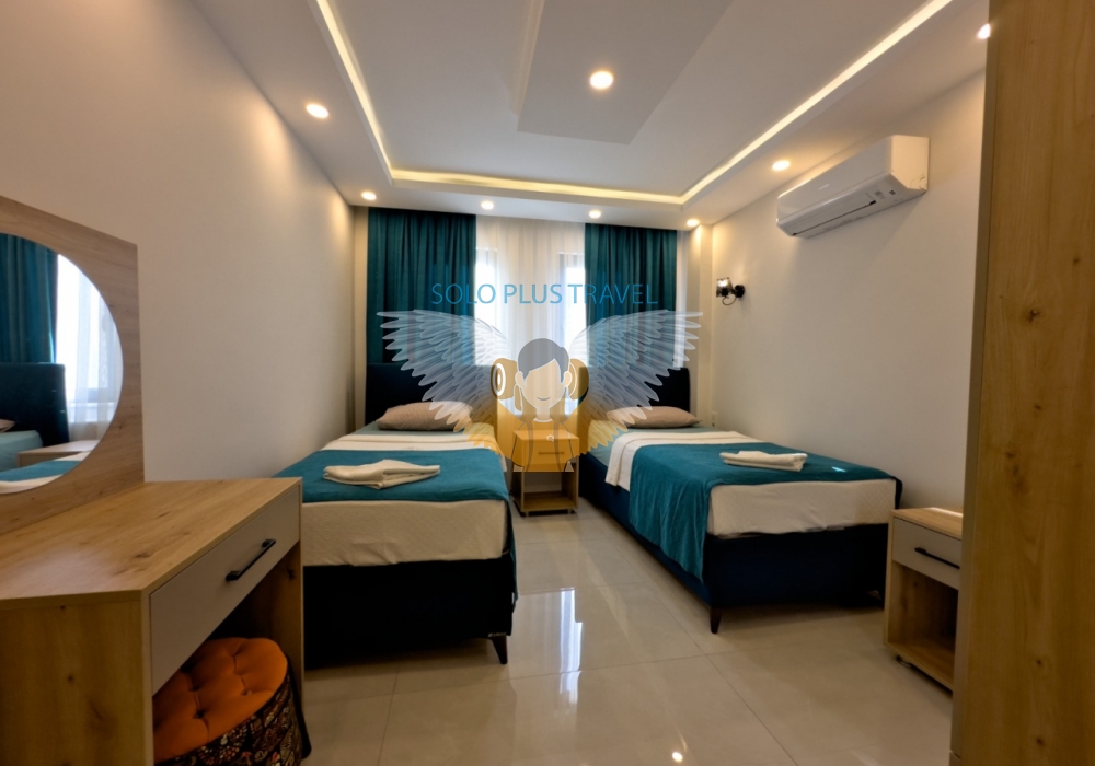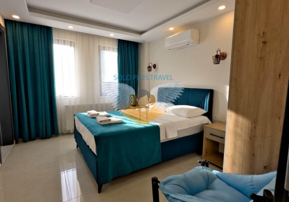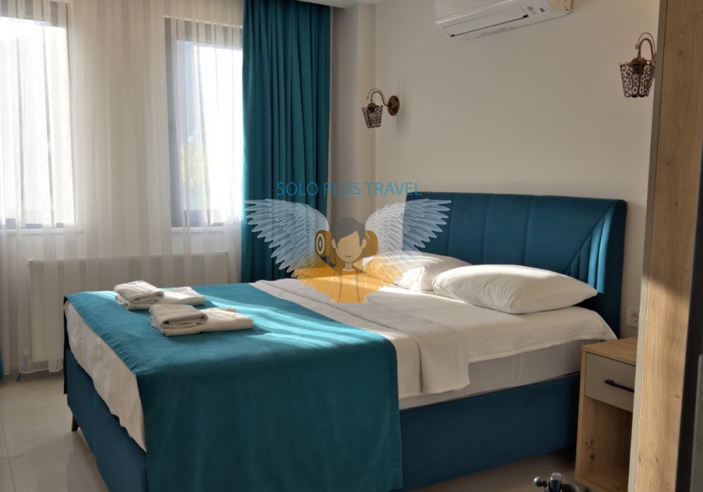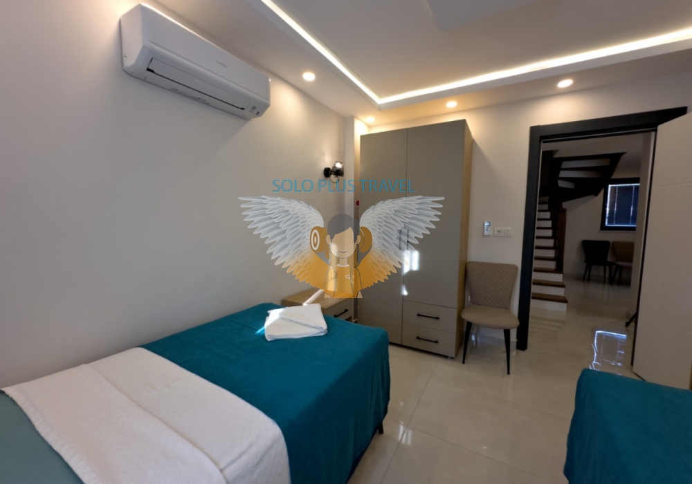 Yatak Odaları 4 adet çift kişilik suite (her biri klima, özel banyo), 1 adet iki tek kişilik klima donanımlı oda