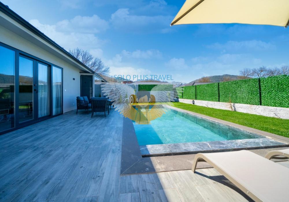 Villanın iç ve dış mekanı oldukça modern tasarlanmış olup havuz alanı korunaklıdır. Mahremiyetine önem veren misafirlerimiz için oldukça doğru bir tercihtir. Ebeveyn yatak odasında bulunan jakuzi ile doğa manzarası eşliğinde tüm yıl beklediğiniz keyfi yaşayabilirsiniz.