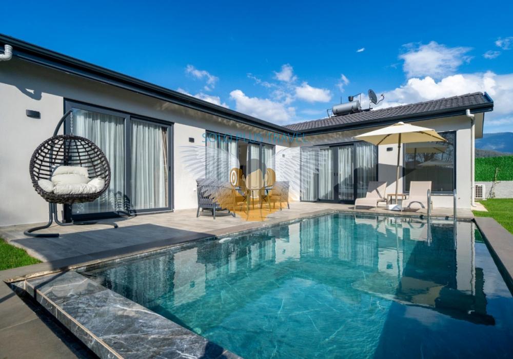 Villanın iç ve dış mekanı oldukça modern tasarlanmış olup havuz alanı korunaklıdır. Mahremiyetine önem veren misafirlerimiz için oldukça doğru bir tercihtir. Ebeveyn yatak odasında bulunan jakuzi ile doğa manzarası eşliğinde tüm yıl beklediğiniz keyfi yaşayabilirsiniz.