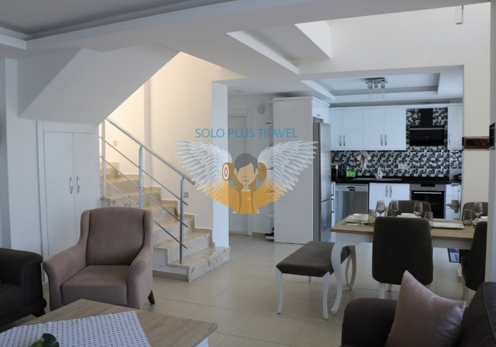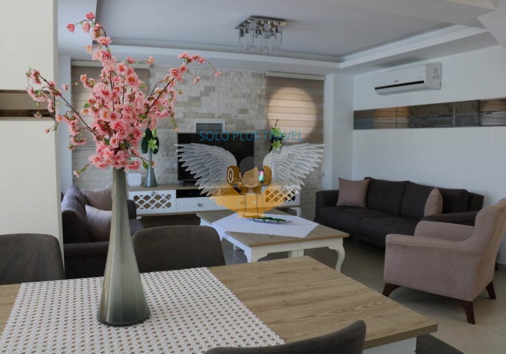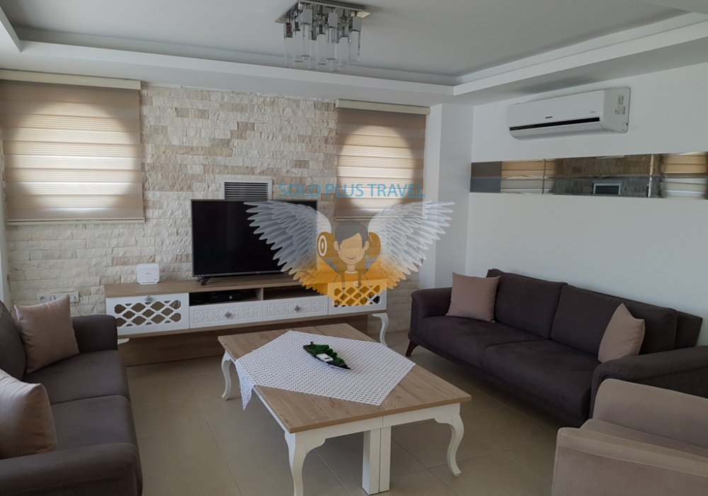 Salon:  içerisinde oturma grubu, WC, uydu alıcı, LCDTV, DVD,internet, klima, yemek masası, sandalyeler ve  havuza çıkış bulunmaktadır.