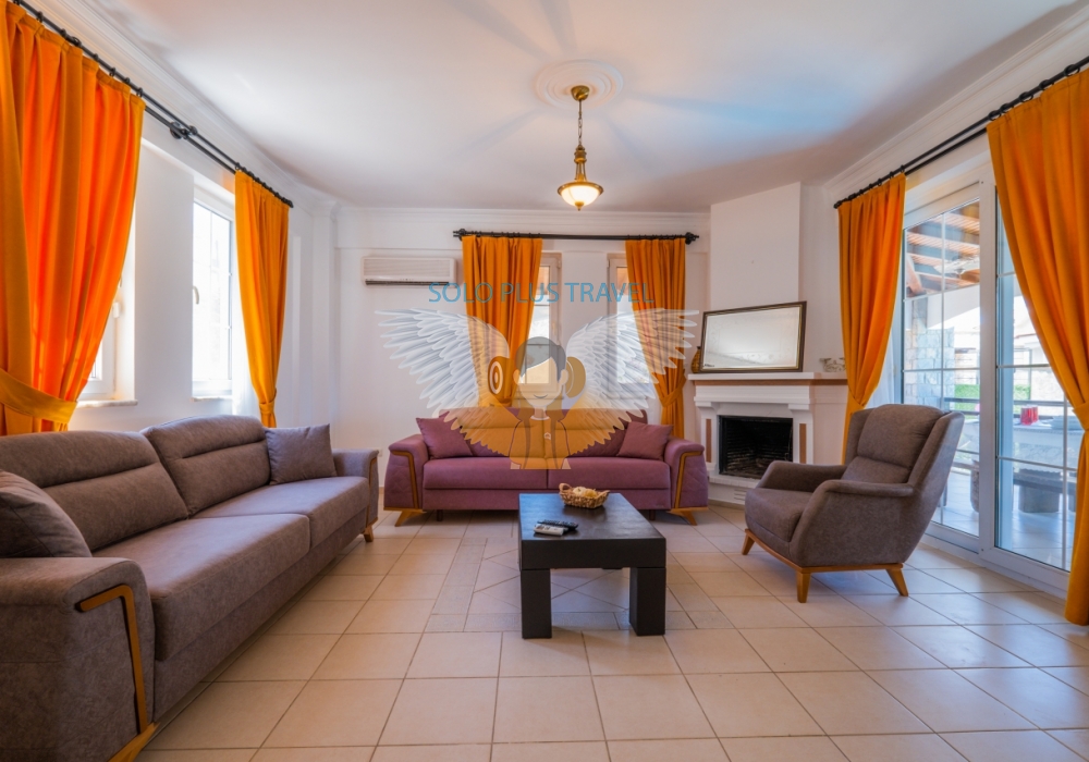 Açık mutfak planlıdır ve 1 adet şömineli büyük salon (oturma odası) vardır.
