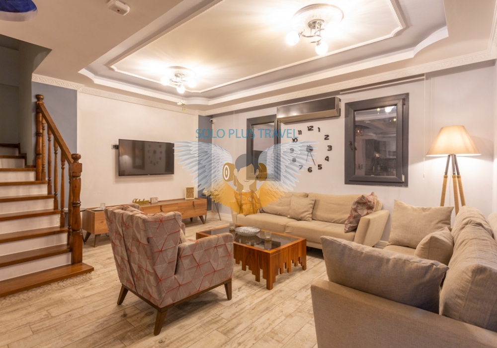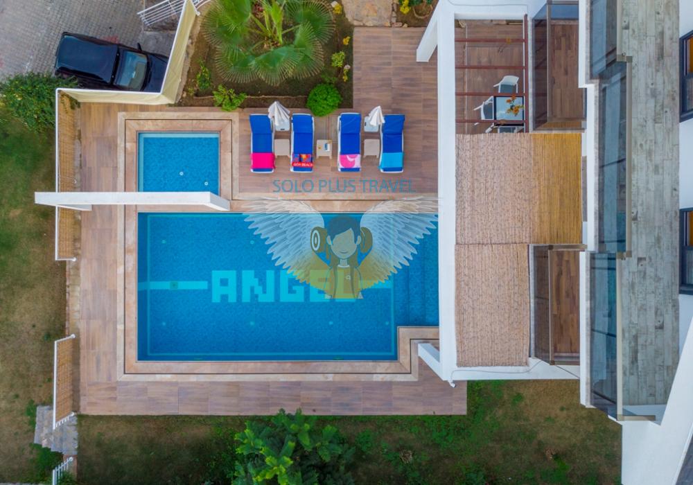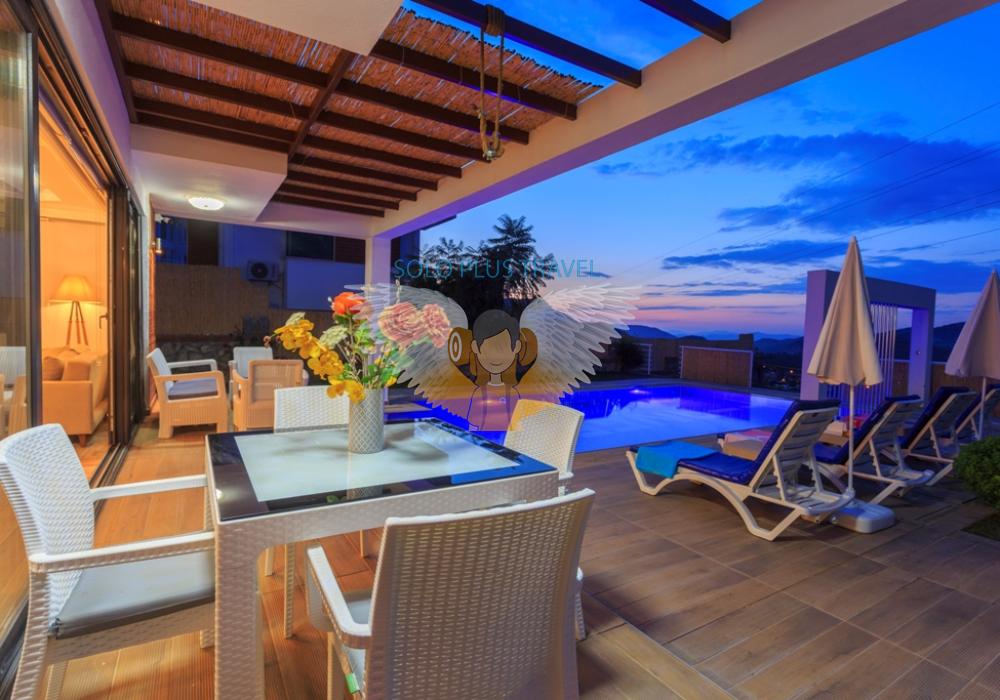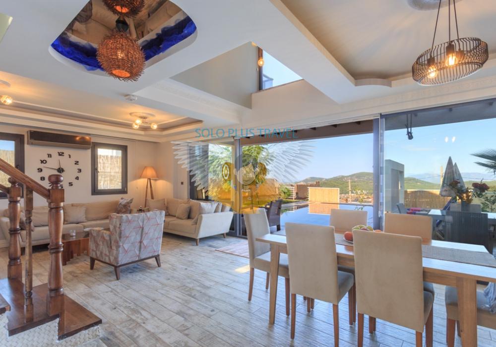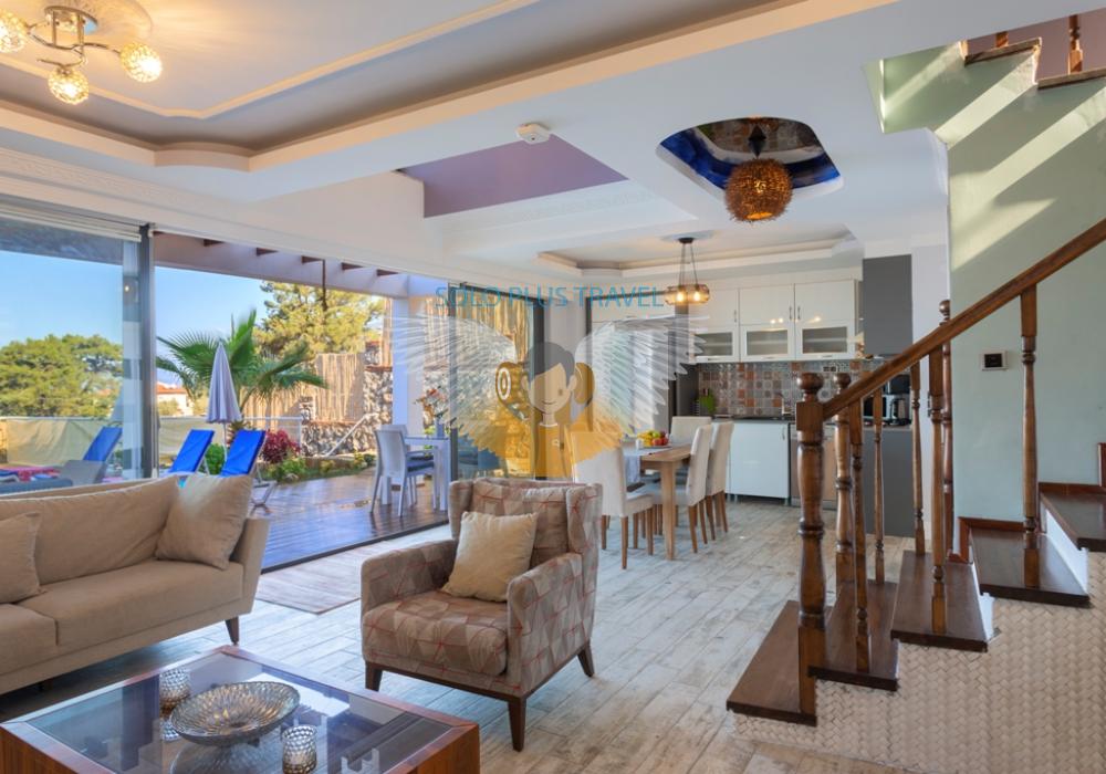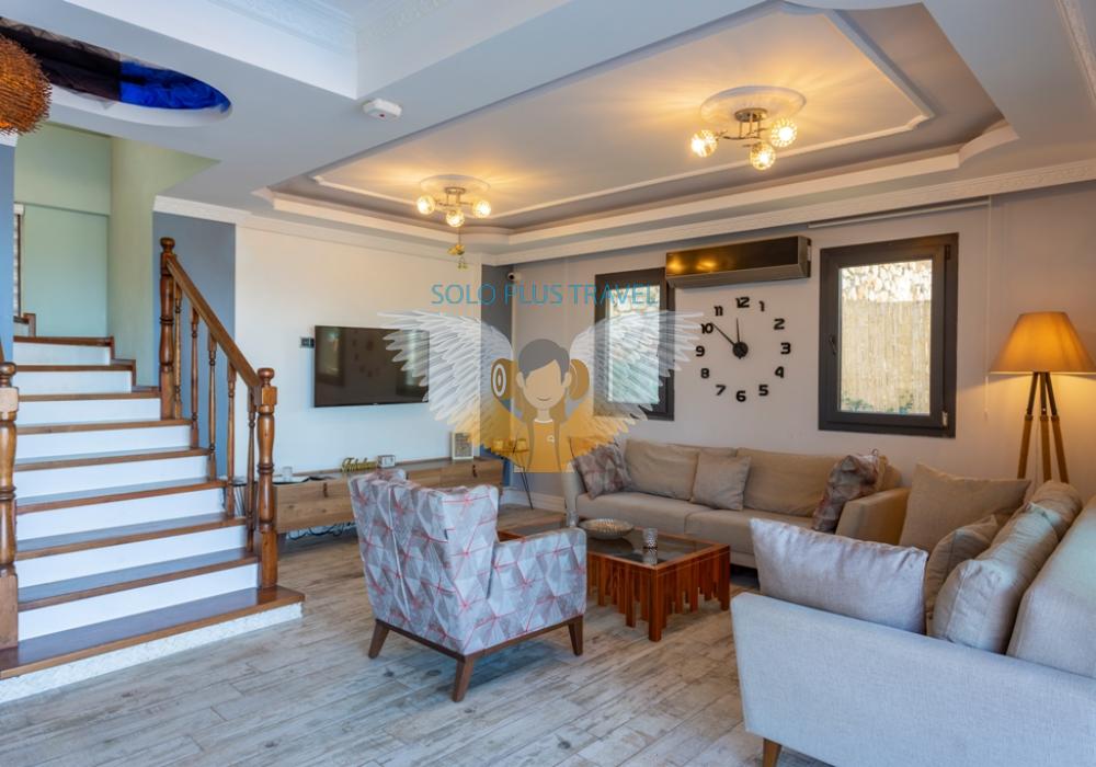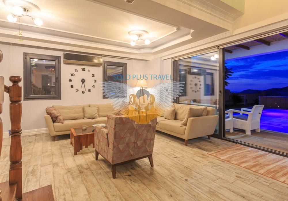 Salon:  Oturma grubu, WC, uydu alıcı, internet, LCDTV, DVD, klima, masa, sandalyeler, havuza çıkış bulunmaktadır.