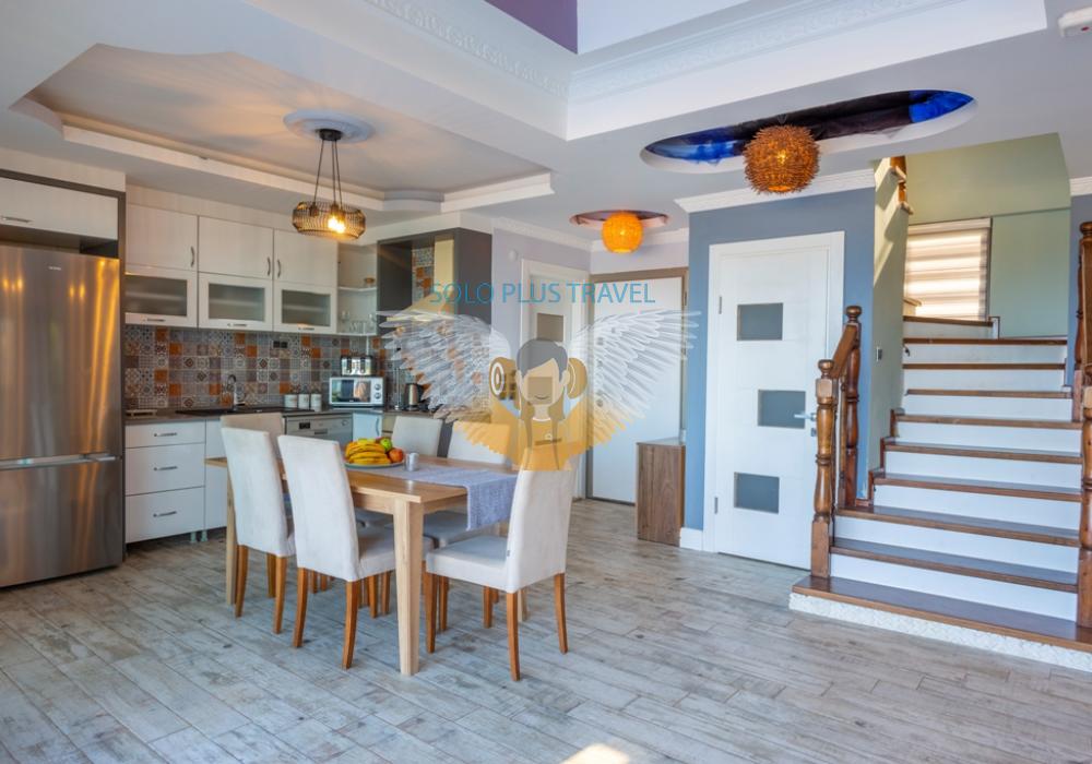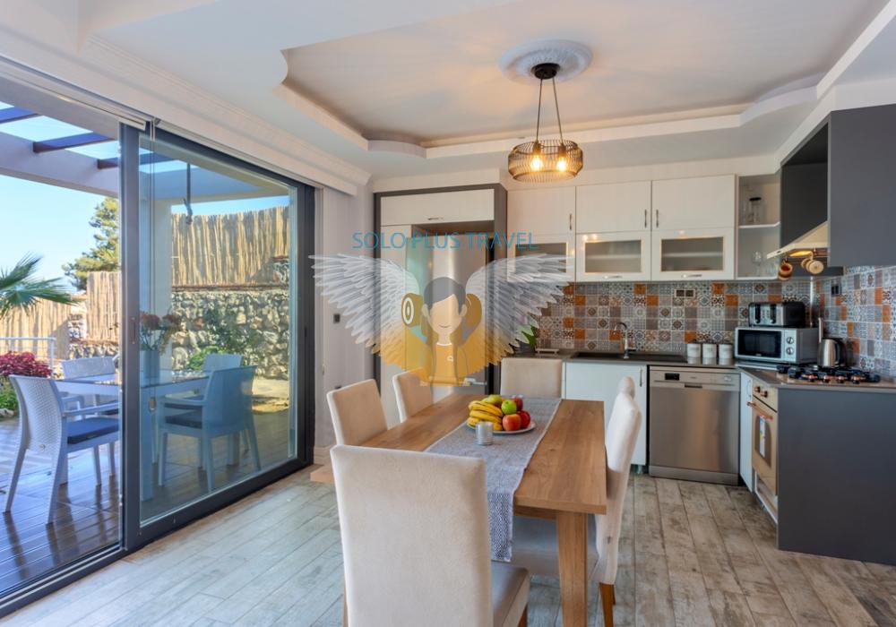 Mutfak:  buzdolabı, fırın, mikrodalga,çamaşır makinası, bulaşık makinası, 4’lü ocak, elektrikli su ısıtıcısı (ketıl), ekmek kızartma makinesi, 8 kişilik yemek takımı, tava, tencereler, çatal ve bıçak takımı ve diğer mutfak malzemesi mevcuttur.