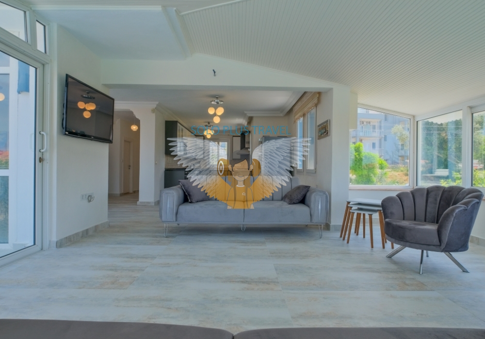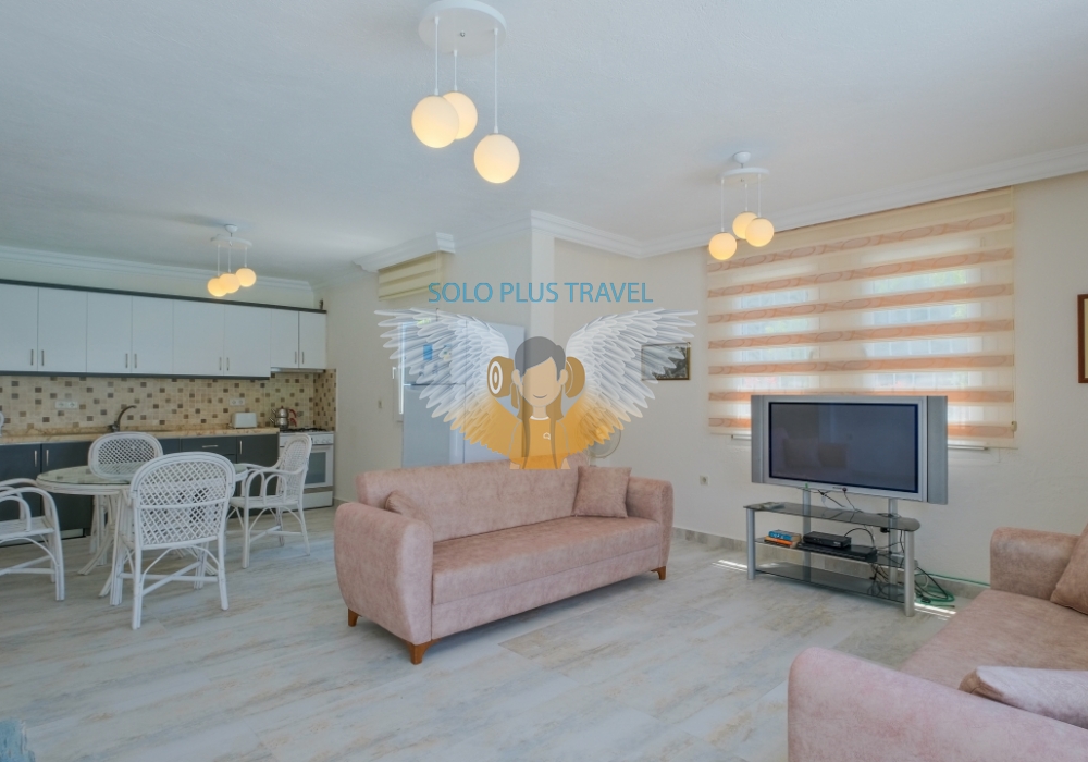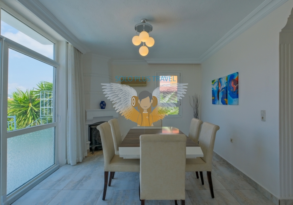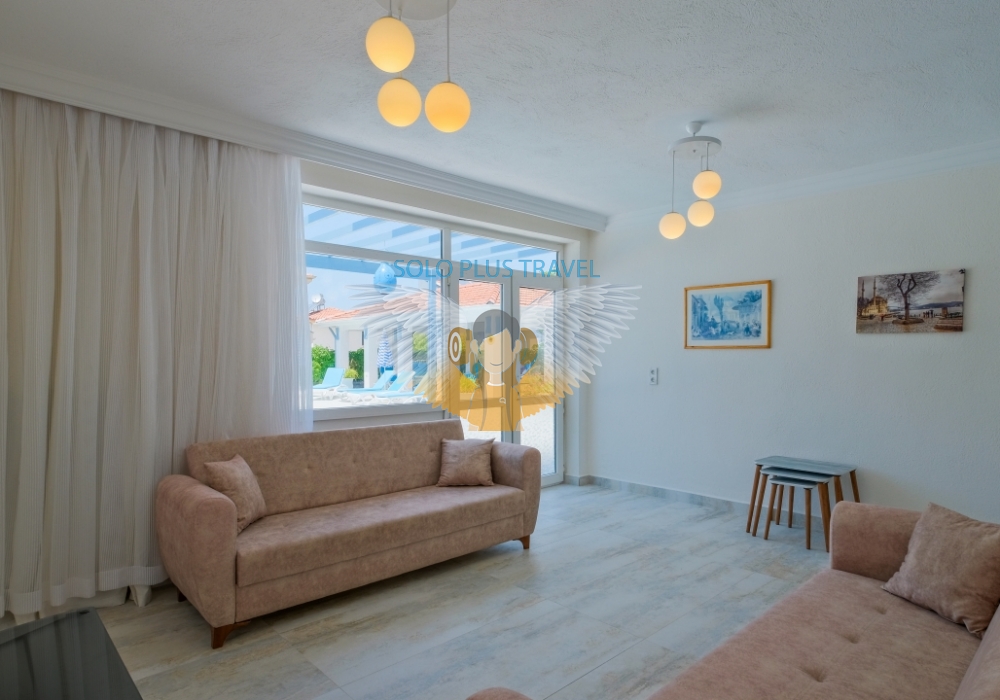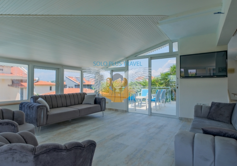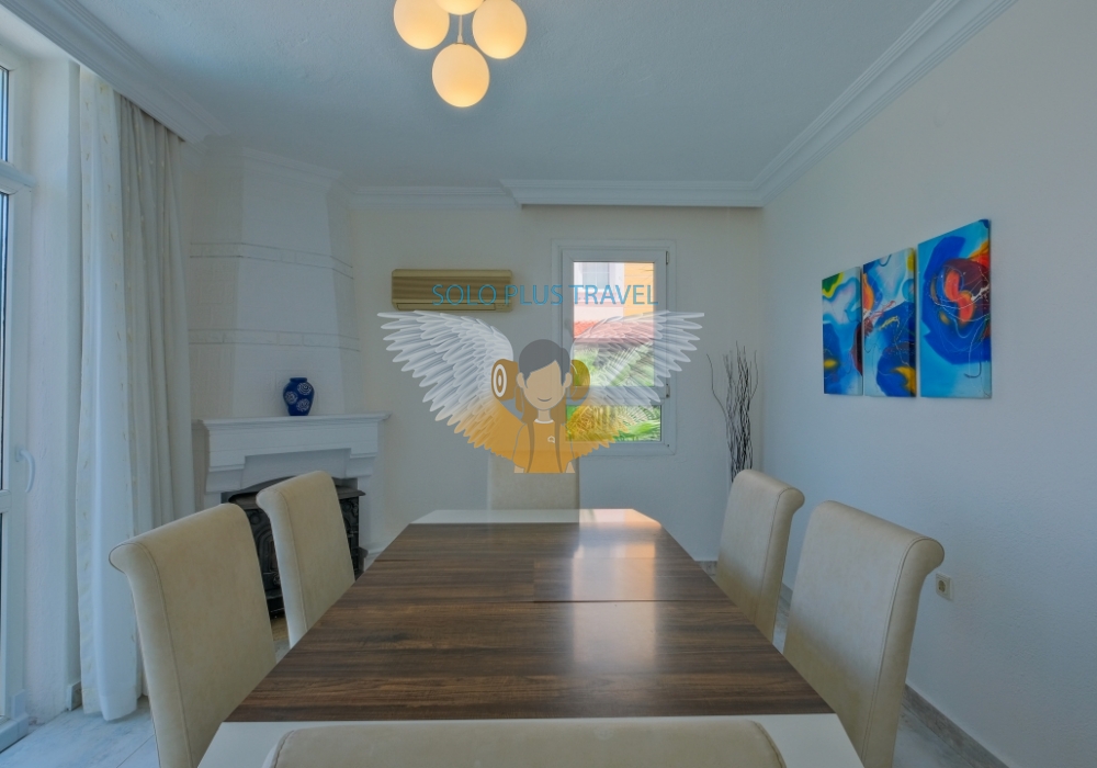 Salon : 8 Kişilik Yemek Masası, klima ve TV ile birlikte Oturma Grupları yer almaktadır.