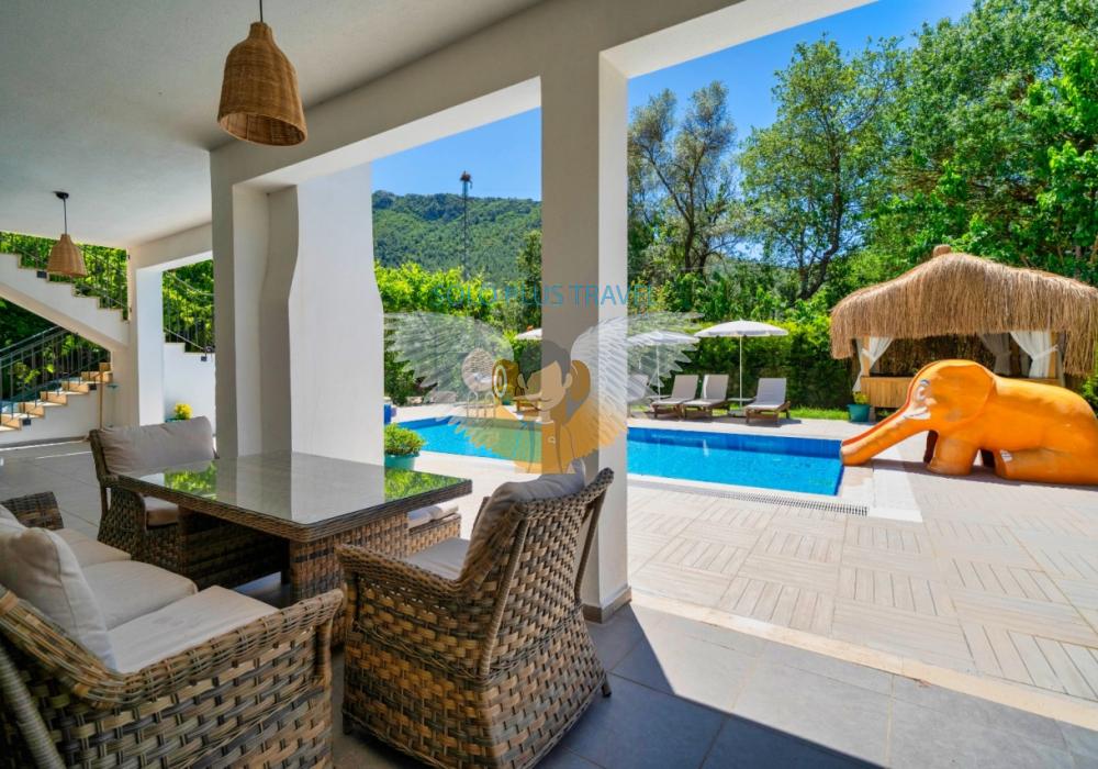 Doğa içinde sakinlik arayan misafirlerimiz için özenle tasarlanmıştır. Güne kuş sesleri ile uyanarak yemyeşil çam ormanlarına karşı eşsiz bir kahvaltı yapma fırsatına sahip olacağınız villa tatil beklentilerinize tam karşılık verebilecek donanımlarıyla daha ilk adım attığınız anda doğru tercihte bulunduğunuzu hissettirecektir. Bahçesinde bulunan çocuklar için oyun alanı, salıncak ve özel oturma alanı ile aynı zamanda havuzun keyfini çıkarırken keyifle ve güvenle de vakit geçirebilirsiniz.