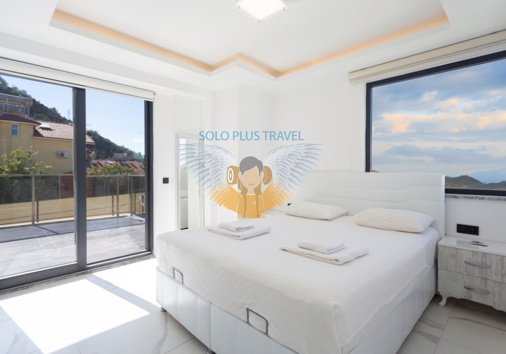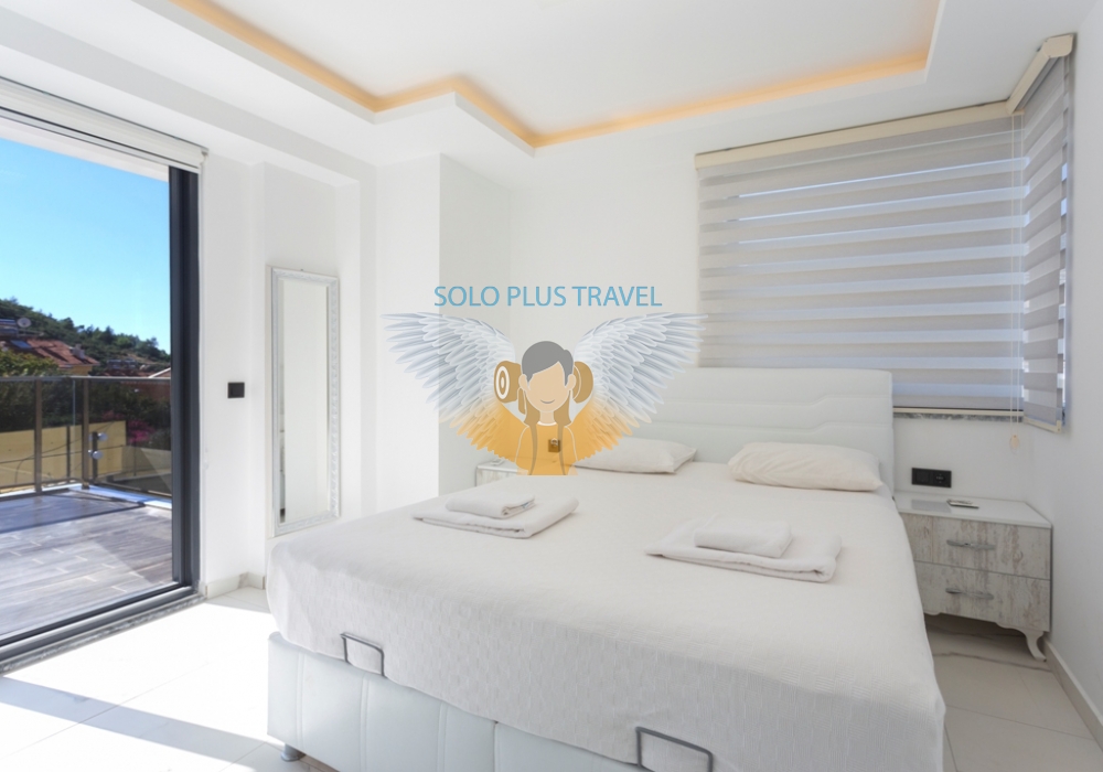 1. Yatak Odası :  Master suit yatak odası 1 adet çift kişilik yatak, elbise dolabı, makyaj masası, balkon, klima, banyo ve tuvalet bulunmaktadır.