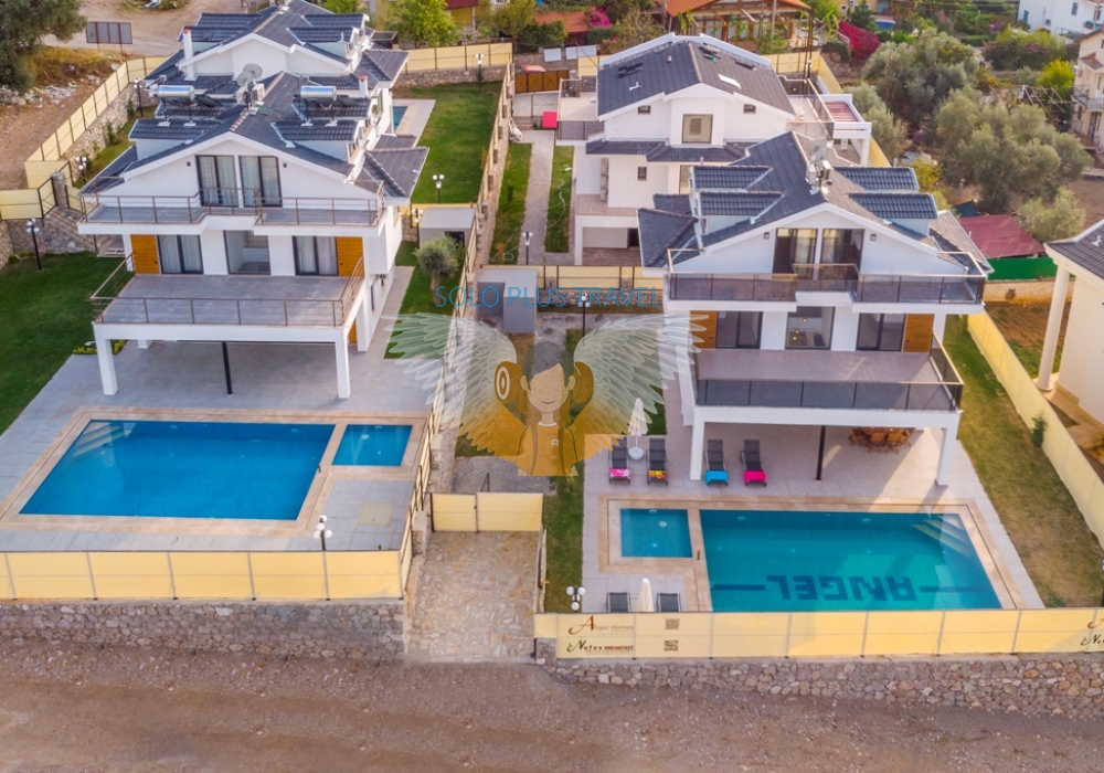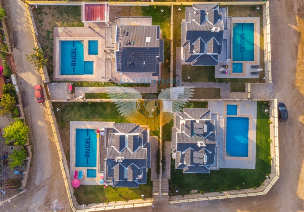 Bahçe: Şezlong, güneş şemsiyesi, duş,oturma grubu,mangal, masa, ve sandalyeler bulunmaktadır.