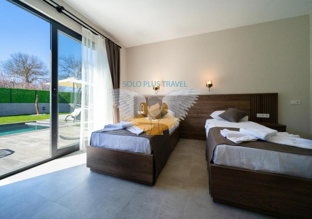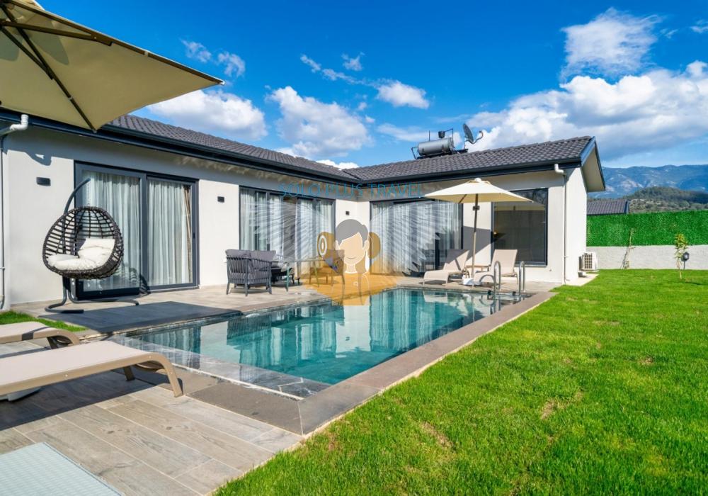 Villanın iç ve dış mekanı oldukça modern tasarlanmış olup havuz alanı korunaklıdır. Mahremiyetine önem veren misafirlerimiz için oldukça doğru bir tercihtir. Ebeveyn yatak odasında bulunan jakuzi ile doğa manzarası eşliğinde tüm yıl beklediğiniz keyfi yaşayabilirsiniz.