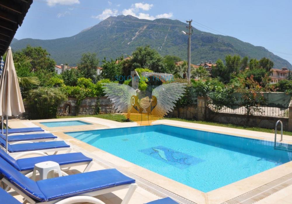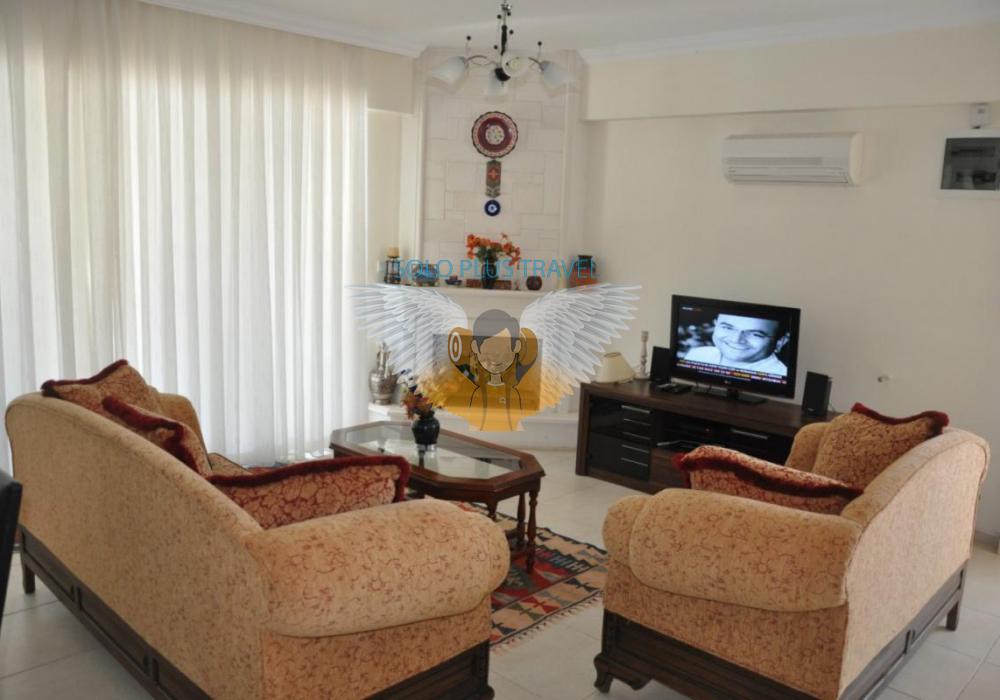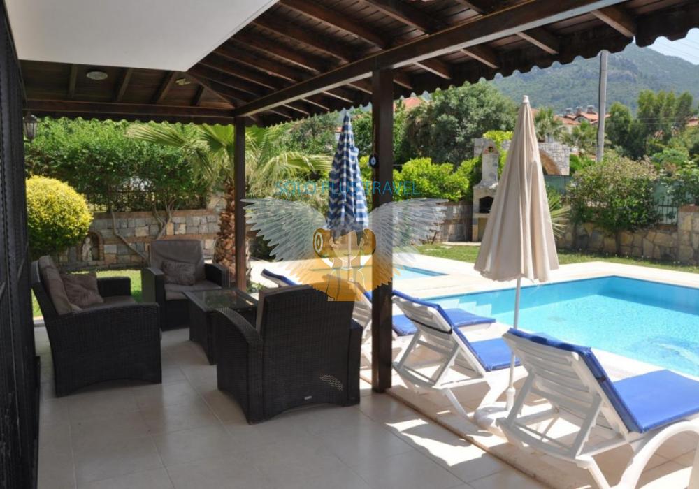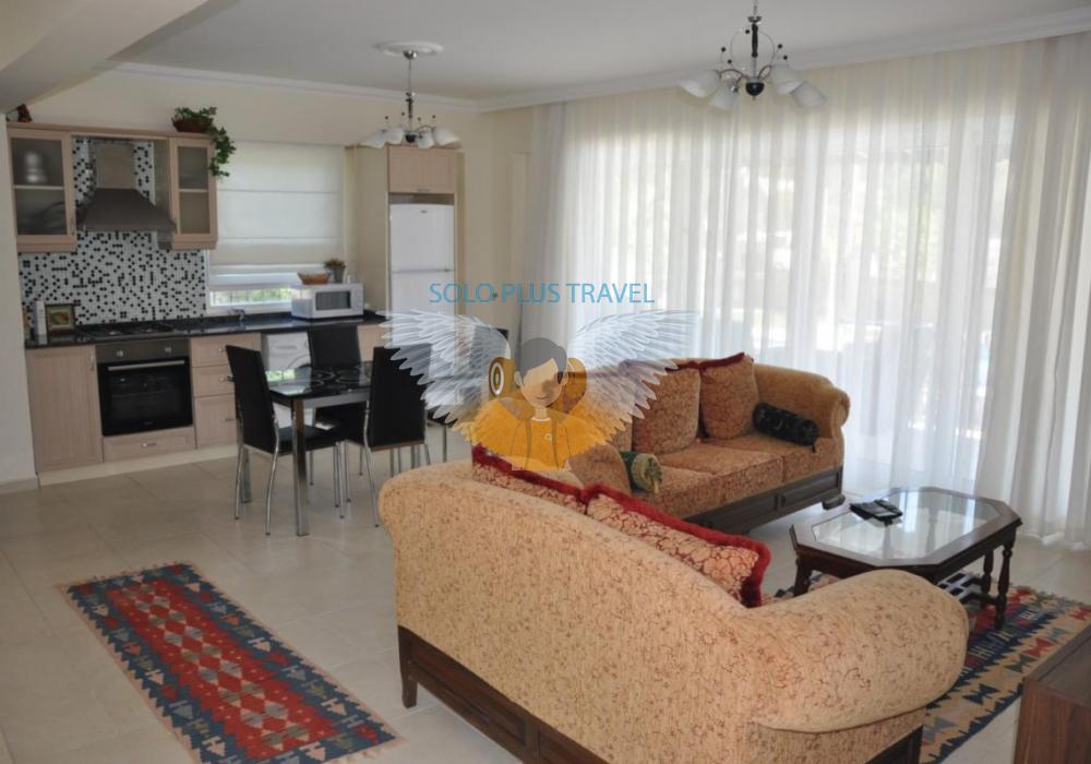 Salon: Şömineli olup içerisinde oturma grubu, WC, uydu alıcı, LCDTV, klima, yemek masası, sandalyeler ve havuza çıkış bulunmaktadır.