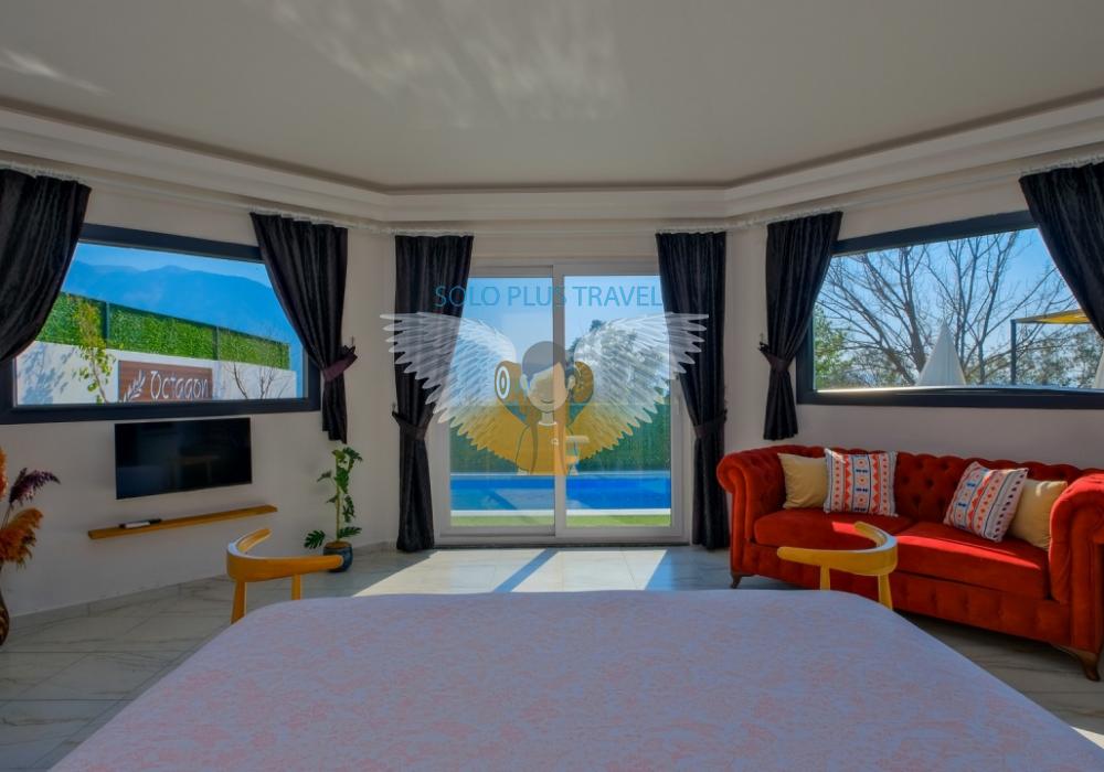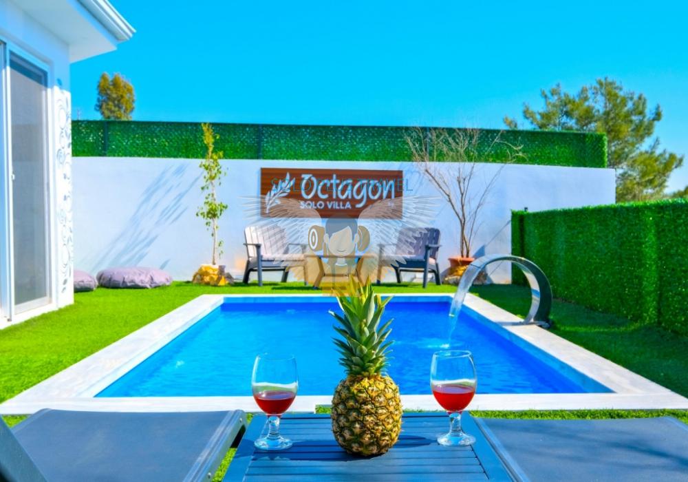 Eşi benzeri olmayan tasarımı ile öne çıkan villamız Octagon villa 1,  2022 yılında temmuz ayının ilk haftası tamamlanmış olup, fethiyede mükemmel bir konaklama sunmaktadır. Muhafazakar konseptte olan villamız balayı çifteri için ise mükemmel bir tercihtir. mimarisi gereği yüksek tavana sahip olan villamız her ne kadar 50 mt kare olsa da cok ferah bir konaklama imkanı sunmaktadır.