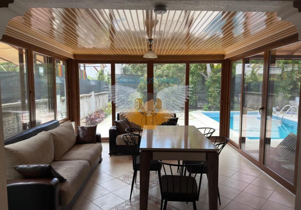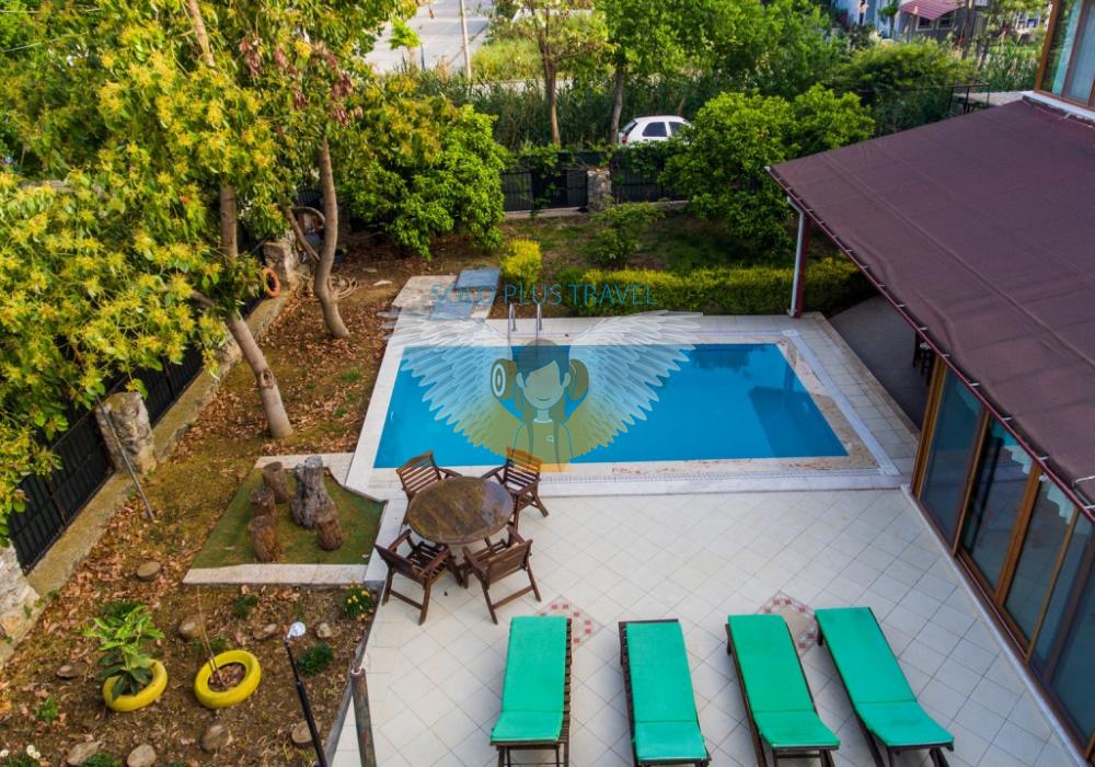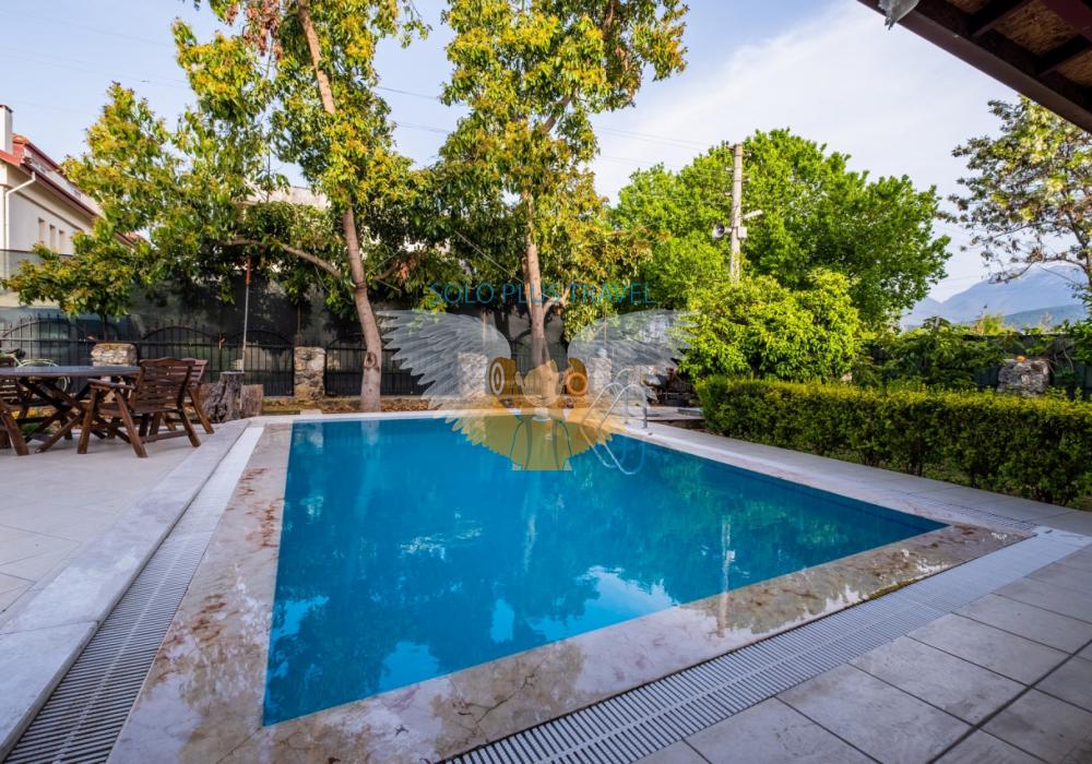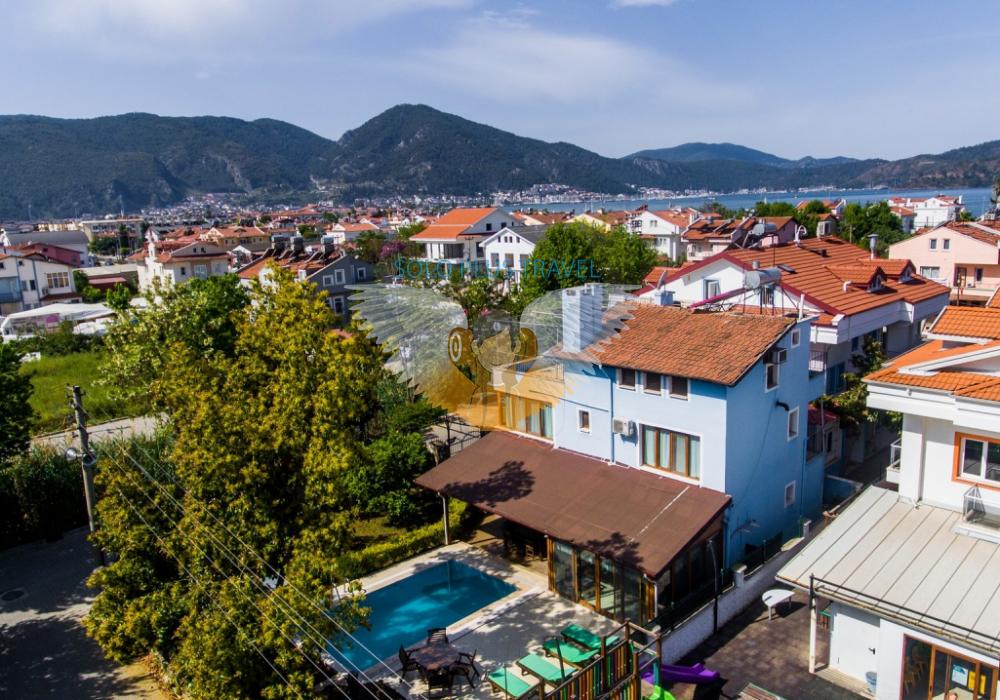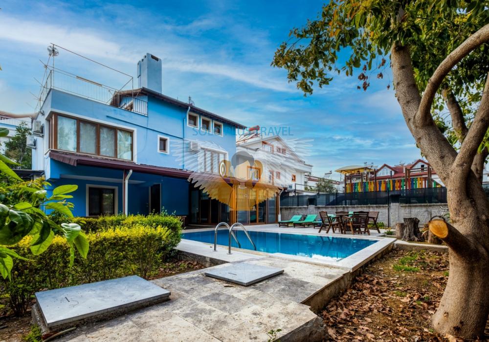 Fethiye kordon, sahil yürüyüş bandına yakın mesafede olan villamız merkezde bulunmaktadır. Özel havuzlu olmakla beraber kalabalık aile ve arkadaşlar için ideal villamızdan kolayca markete, fırına, merkeze ve otobüs durağına ulaşım imkanı yürüme mesafesindedir. Eğlenceli yaz akşamları geçirmenizi sağlayan büyük bahçesi, ferah odaları ile tatilinizi unutulmaz kılmak için buradayız. 2 katlı olan villamızın giriş katında ayrı mutfak ve salonla beraber kapalı geniş verandası ve geniş acık hava verandası da bulunmaktadır. 2.katında ise 2 adet Twin, bir adet Double oda bulunmaktadır. 2 adet banyo ve tuvaleti bulunan villamızın, üst katta bulunan banyosunda jakuzisi de bulunmaktadır.