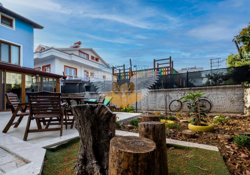 Bahçe : Özel yüzme havuzu, şezlong, yemek masası, özel barbekü alanı bulunmaktadır.