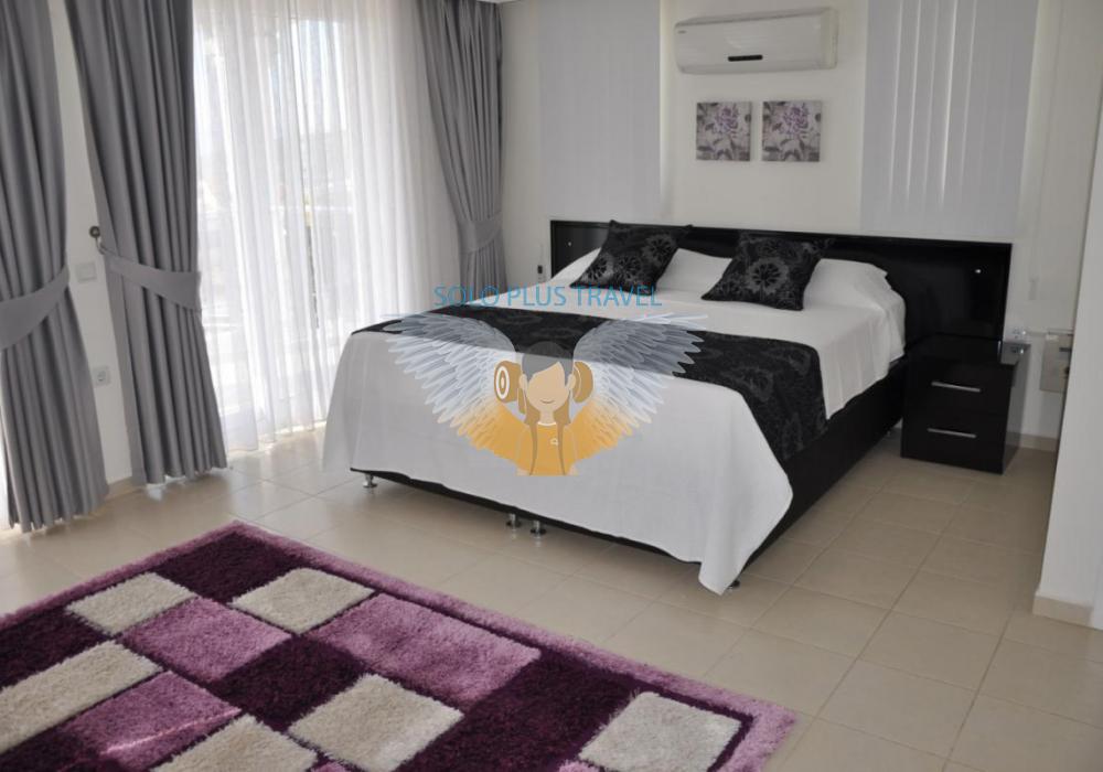 1. Yatak Odası :  Master suit yatak odası 1 adet çift kişilik yatak, elbise dolabı, makyaj masası, balkon, klima, banyo ve tuvalet bulunmaktadır.