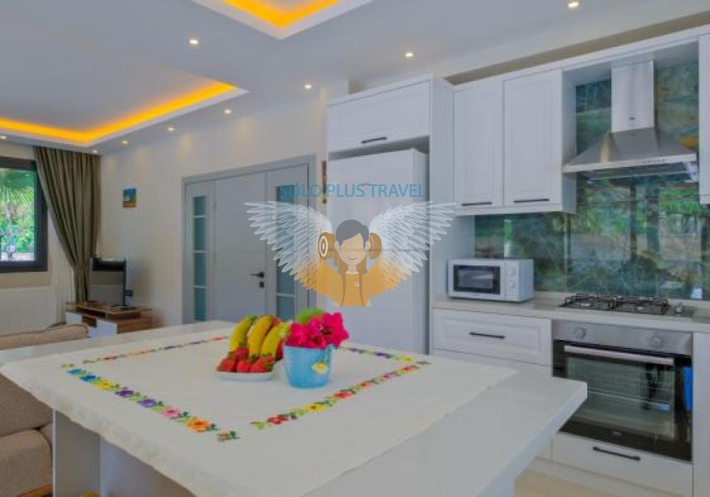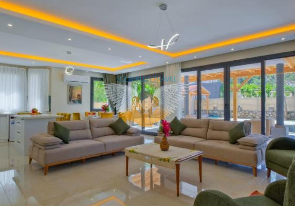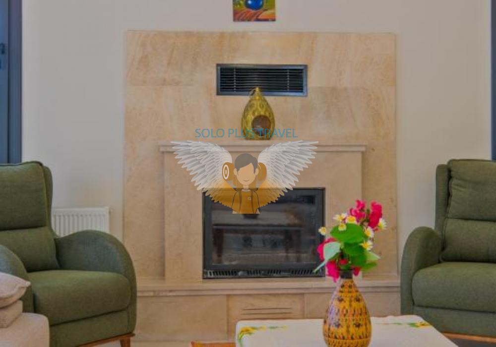 Açık mutfak planlıdır ve 1 adet şömineli büyük salon (oturma odası) vardır.