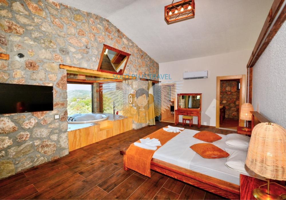 1.Yatak Odası: Çift kişilik yatak,jakuzi,klima,banyo,lavabo