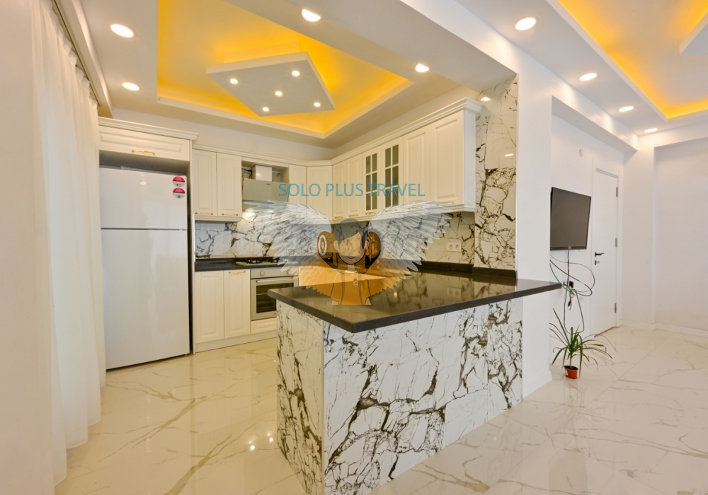 Mutfak : Amerikan mutfak içerisinde buzdolabı, çamaşır makinesi, fırın,  ocak, kattle, yemek takımı, çatal-bıçak seti, tencere, tava, bardak ve diğer mutfak ekipmanları mevcuttur.