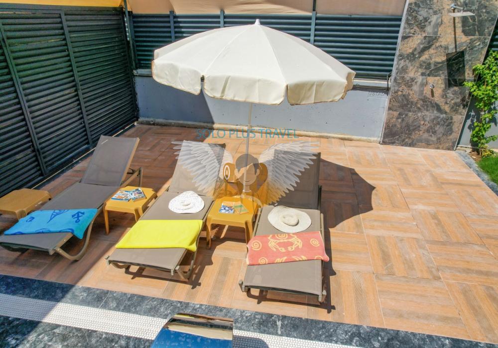 Bahçe : Özel yüzme havuzu, şezlong, şemsiye bulunmaktadır.
