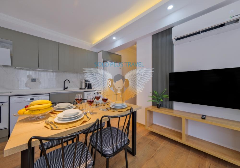 Fethiye Merkez’de konumlanan Solo Apart Light1, doğayla iç içe yapısı ve merkezi konumuyla hem şehir yaşamını hem de huzurlu bir tatil deneyimini bir arada sunar. Fethiye apart ve günlük kiralık daire arayan misafirler için ideal olan bu 1+1 daire, 4 kişilik konaklama kapasitesiyle çekirdek aileler, çiftler ve arkadaş grupları için konforlu bir seçenek oluşturur.