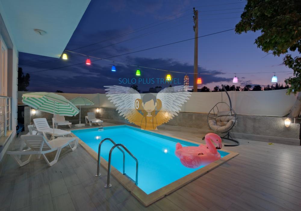 Yanındaki villa Villa Solo Ellie 1 ile aynı konsepttedir; isteyen misafirler iki villayı bir arada kiralayabilir ve havuz başındaki bağlantı kapısından geçiş sağlayabilir.