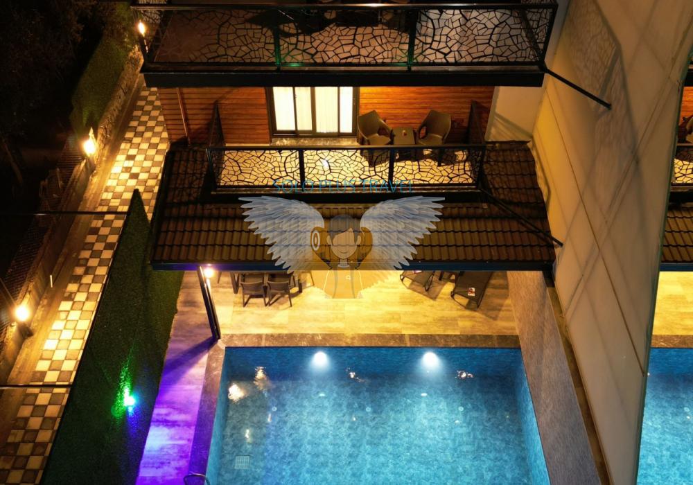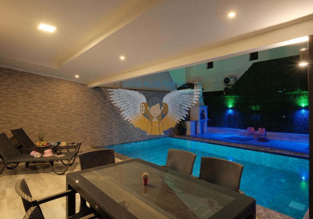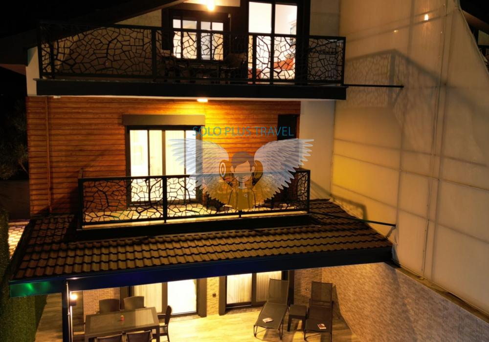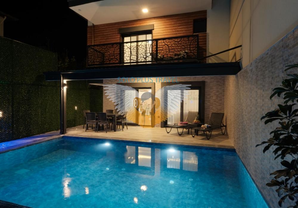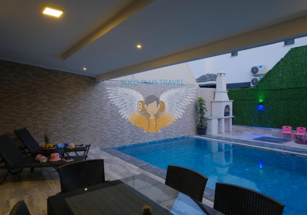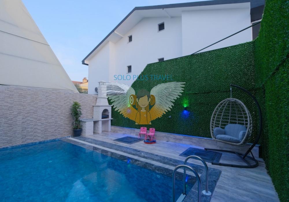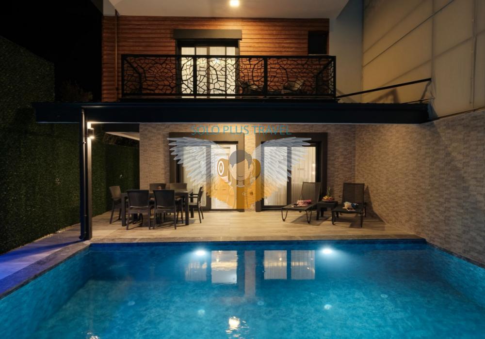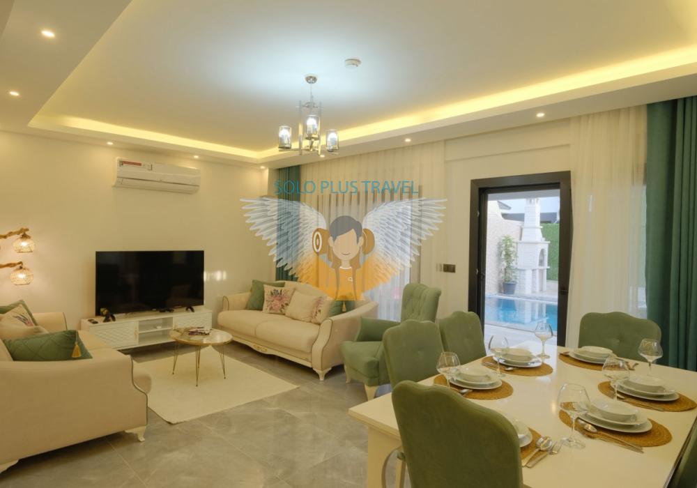 Merkezi noktalara kolay ulaşım imkânı sunan villada, sevdiklerinizle birlikte güvenli ve huzurlu bir tatil geçirebilirsiniz. Güneşin ve temiz havanın tadını çıkarabileceğiniz havuz terasında şezlong takımı, oturma grubu, salıncak ve barbekü alanı bulunmaktadır. Havuz terasına açılan ferah oturma odası ve açık mutfak, konforlu bir yaşam alanı sunmaktadır.