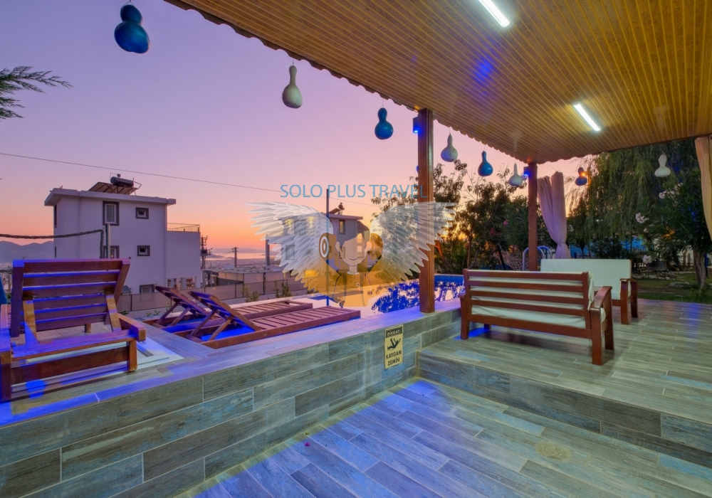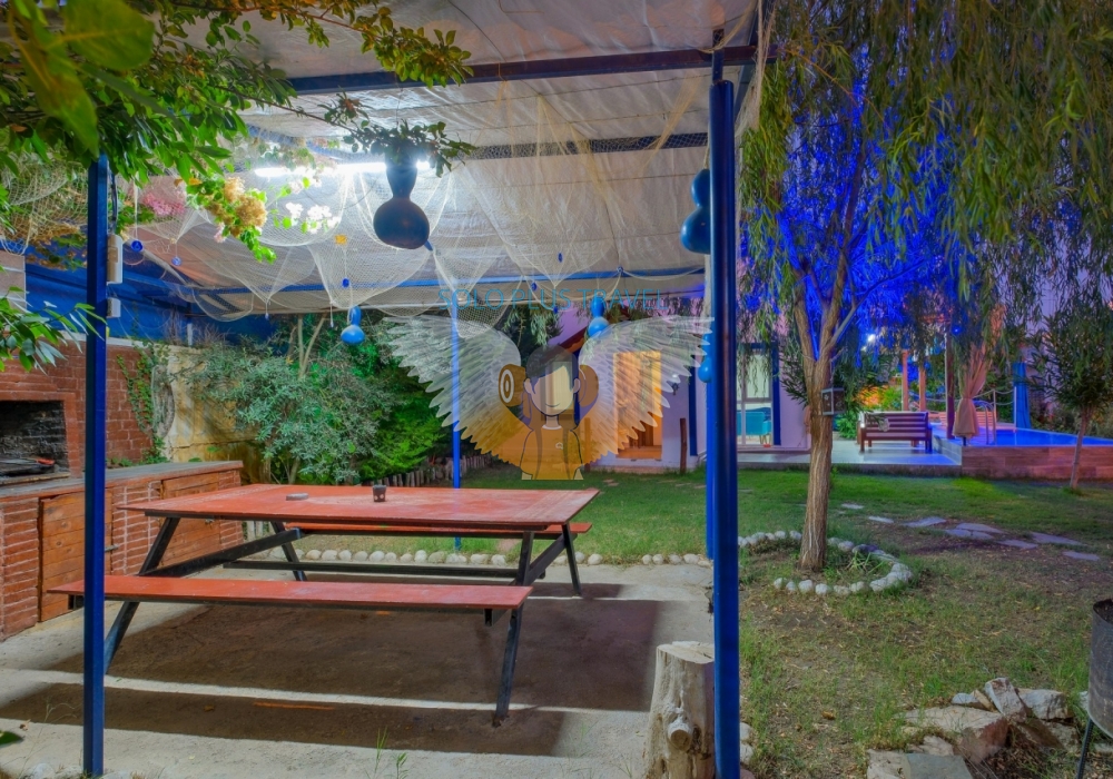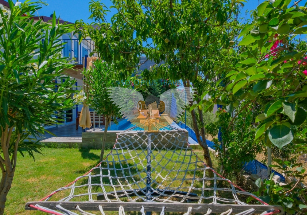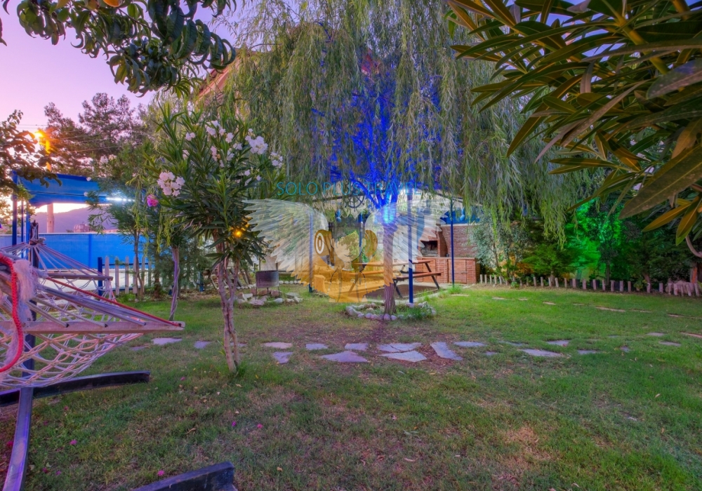 • Veranda ve bahçe: Geniş veranda, günbatımında açık hava keyfi ve dinlenme imkânı sunar